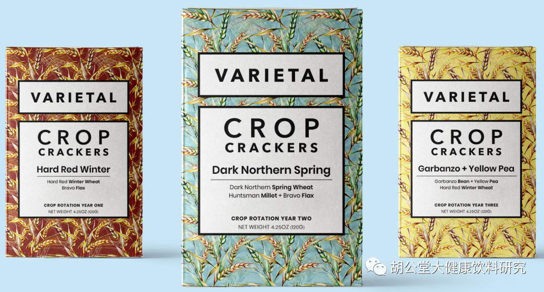由Alpha Food Labs推出的饼干Varietal Crop Crackers采用多种不同的小麦、豆类和在轮作中种植而得的农作物制成。该产品突出轮作周期以及在该周期中收获的农产品,旨在激励农民进行轮作以此支持土壤和水的健康。