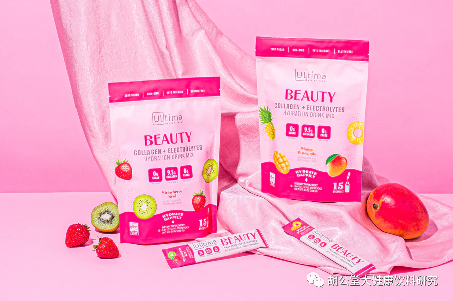 2022年11月,Ultima Replenisher推出了Ultima Beauty“胶原蛋白+电解质”粉末产品系列。Ultima Beauty含有电解质、微量矿物质、胶原蛋白、维生素C和锌,可支持头发、皮肤和指甲的健康,并帮助人体实现最大的水合作用。该产品是一种低卡路里、非转基因、无麸质和适合酮类饮食的消费选择,包含“草莓奇异果”和“芒果菠萝”两种口味。
