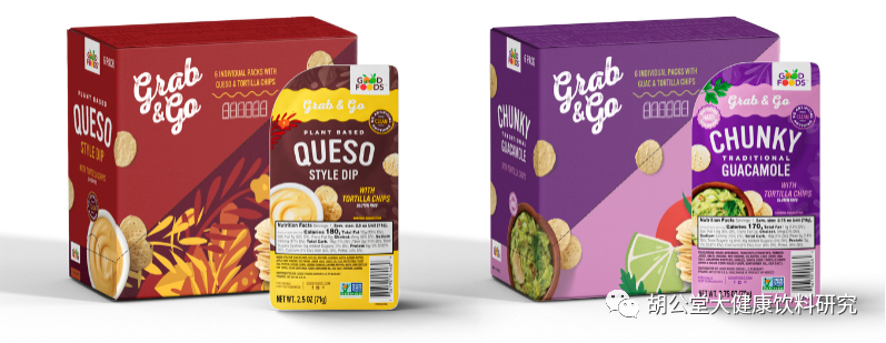 图源:Trendhunter蘸酱生产商Good Foods旗下两种最受欢迎的产品牛油果酱和其植物基辣椒乳酪酱均推出了方便的Grab & Go零食包装。这些包装以Good Foods的新鲜美味蘸料搭配玉米饼片为特色,均经过非转基因项目验证,纯素食,无麸质,单份卡路里不超过180大卡,既满足了消费者对方便零食的兴趣,同时又不牺牲风味和新鲜度。