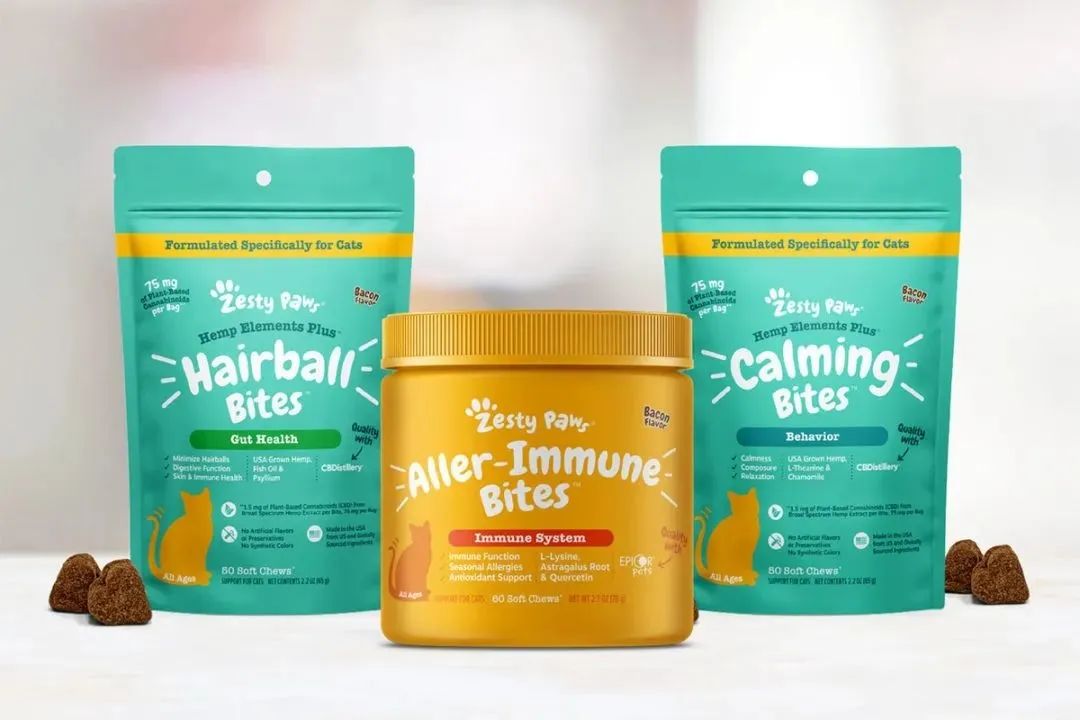 功能性宠物补充剂品牌Zesty Paws®推出三种专门针对猫的营养补充剂,包括Hemp Elements Plus™ Calming Bites™、Hemp Elements Plus™ Hairball Bites™ 和 Aller-Immune Bites™。