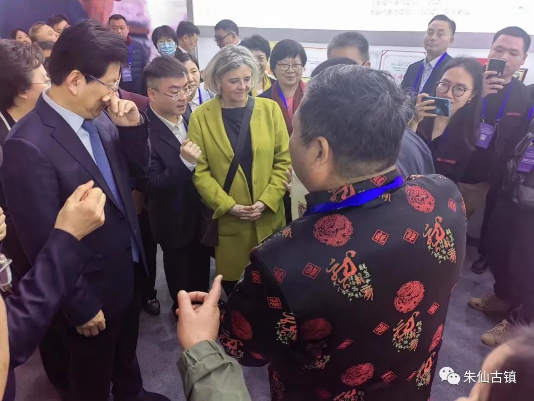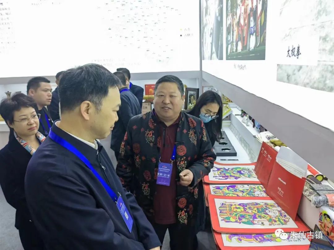 11月23日在成都版博会,中宣部副部长张建春,河南省委宣传部副部长黄玉国陪同世界知识产权组织副总干福分班,莅临河南展馆现场调研朱仙镇木版年画;