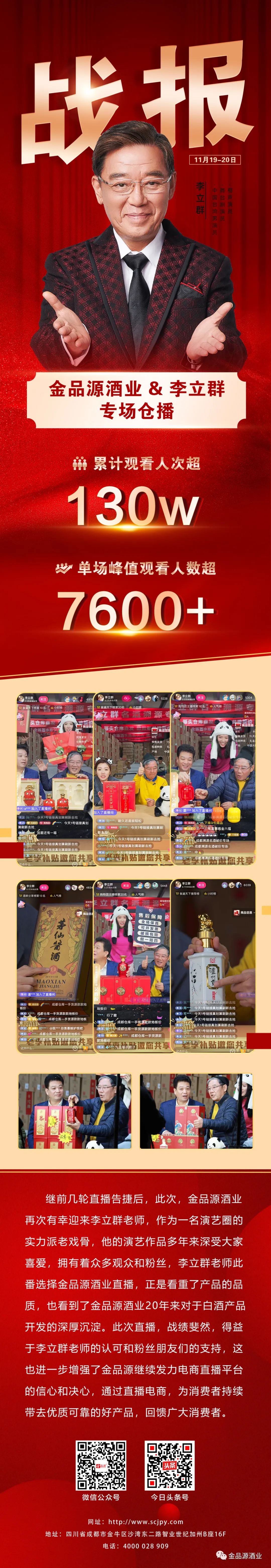 观看人次超130万——“金品源酒业”&“李立群”专场仓播战报