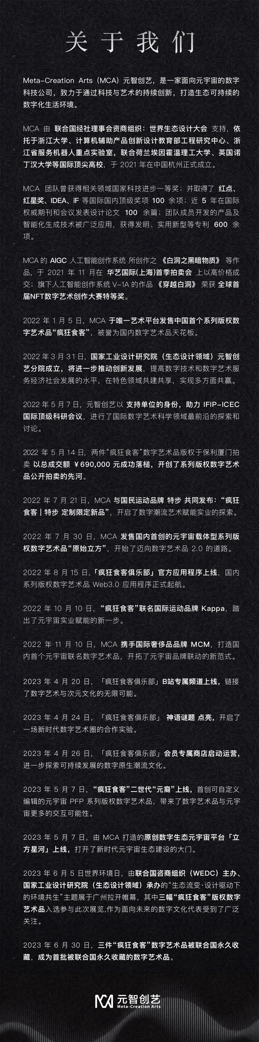 作为国内顶级的数字身份和国内第一系列数字艺术版权品,“疯狂食客”通过海量的用户及位知名艺人网红推广,携手特步、卡帕、MCM等知名品牌,辐射时尚、娱乐、潮流文化及奢侈品等多个传播领域,从国内走向国际;并赋能实体产业产品,携手线下消费场景、出席行业会展,链接 Web 3 与线下生活,进一步奠定其价值基础。