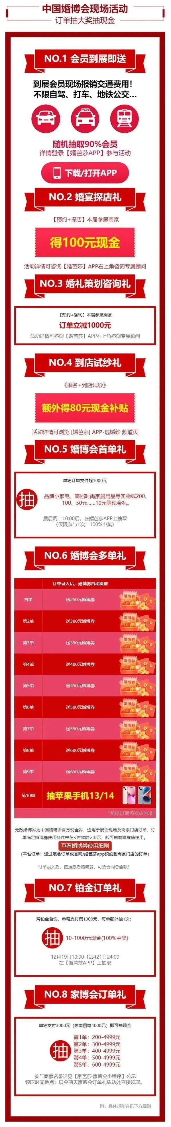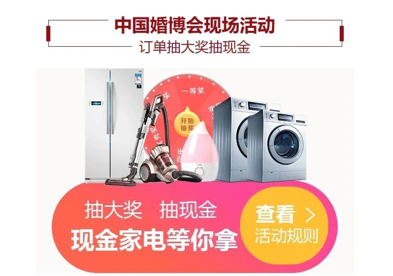 300个国际国内高端品牌,80万款结婚新品,会送100~5000元现金券,还准备了到展礼、现金券、订单礼、多单礼、铂金礼等!更有各种品牌家电、百元至千元返现大奖拿到手软!!!