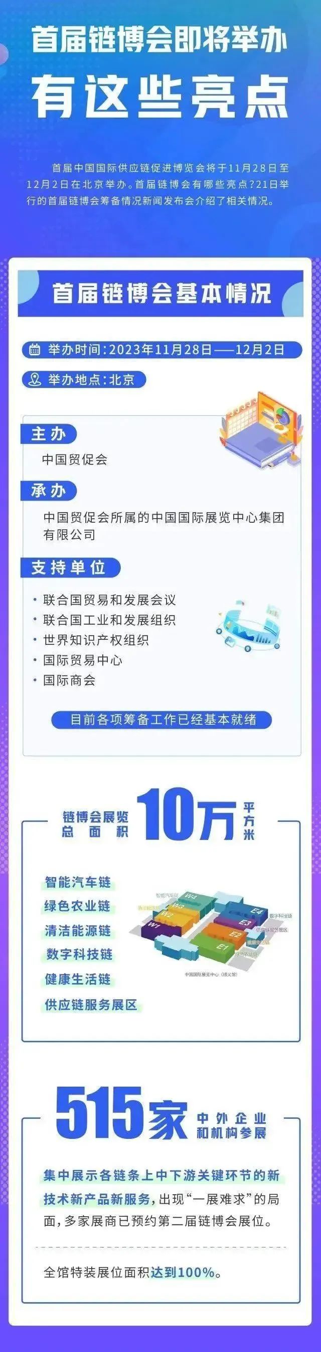 11月28日至12月2日,北京链博会即将举办,届时有智能汽车链、绿色农业链、清洁能源链、数字科技链、健康生活链,那么展会有哪些亮点?一起来看看吧!