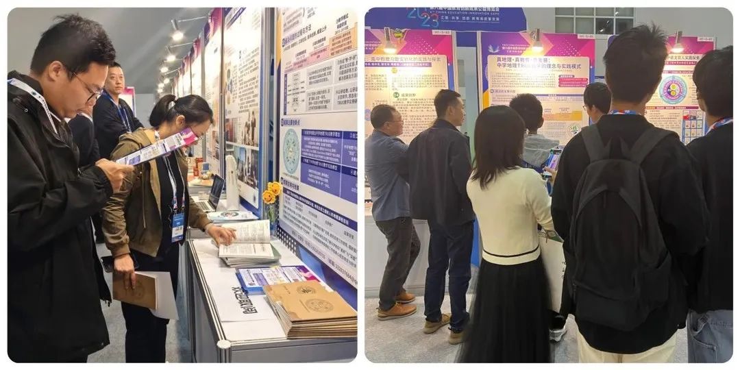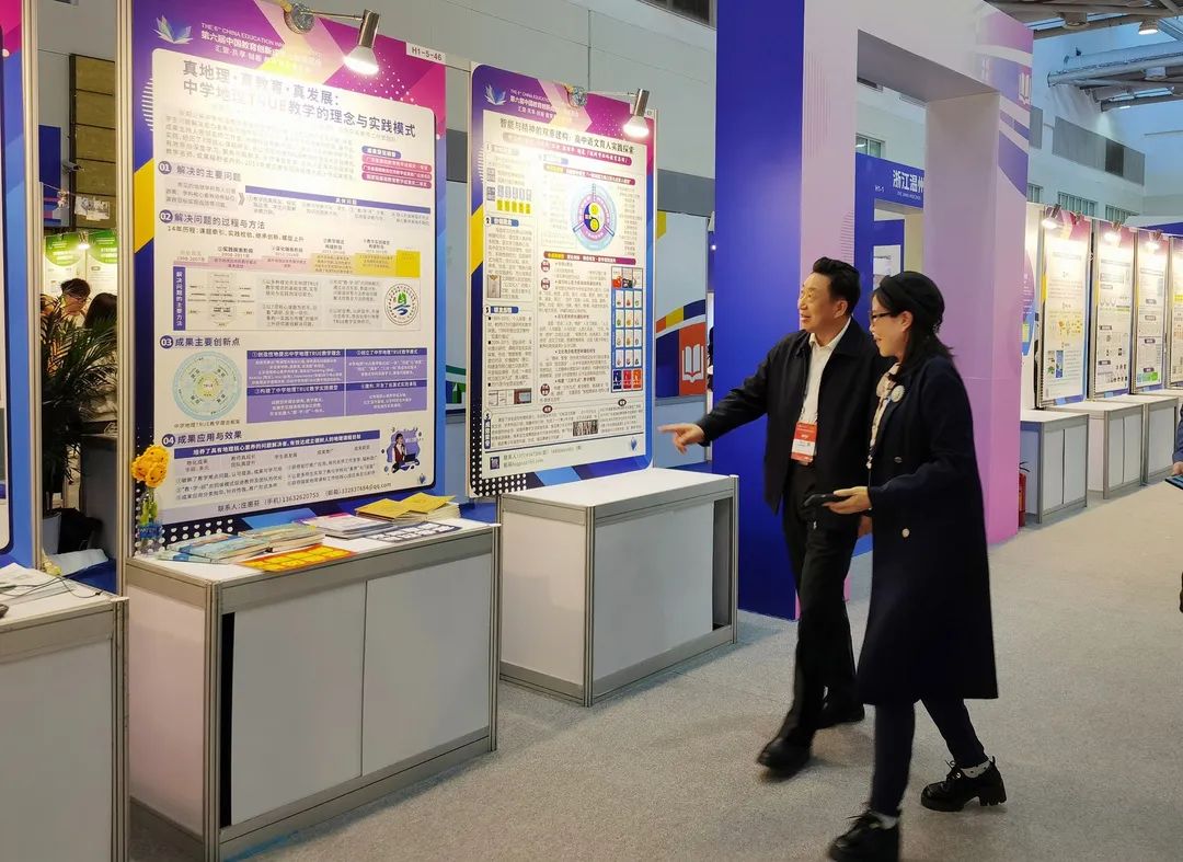 许多老师长时间驻足在“真地理.真教育.真发展:中学地理TRUE教学的理念与实践模式”的教学成果展台前,认真观看展板、翻阅资料,并频频提出很多相关的教学问题,庄惠芬老师带领参展的几位工作室学员对这些问题一一做了详细的解答。