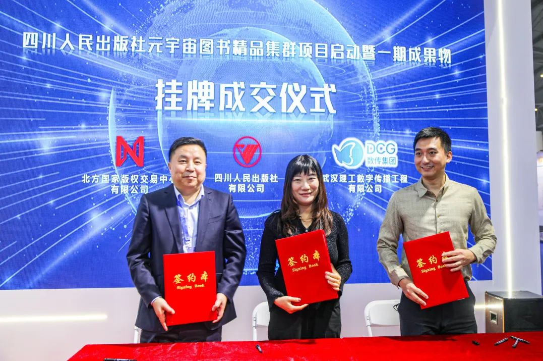 签约活动中,四川人民出版社与数传集团合作开发的《皮艾可儿童职业启蒙趣味绘本系列》《孔夫子的论语课》等3部“元宇宙”图书标的在北方国家版权交易中心挂牌成交,本次交易实现了“元宇宙”图书的开发、运营、交易全链条战略合作,通过金融手段赋能元宇宙出版融合产品价值快速转化。这也是我国首次实现元宇宙产品在国家级版权交易平台的挂牌成交。