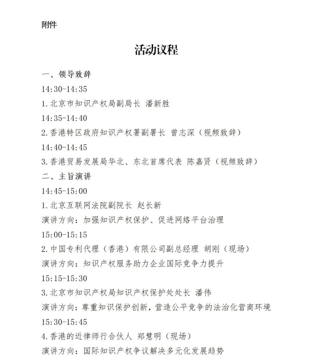 为贯彻党的二十大关于加强知识产权法治保障的部署,加强京港两地知识产权领域的交流与合作,推动知识产权贸易繁荣和解决争议多元化发展,北京市知识产权局与香港特区政府知识产权署、香港贸易发展局联合主办第二十六届京港洽谈会之知识产权专题活动。活动旨在共建良好的知识产权创新生态,促进区域知识产权贸易,增强知识产权国际保护水平及竞争力,以满足京港两地的创新资源及知识产权服务资源需求。具体安排如下:
