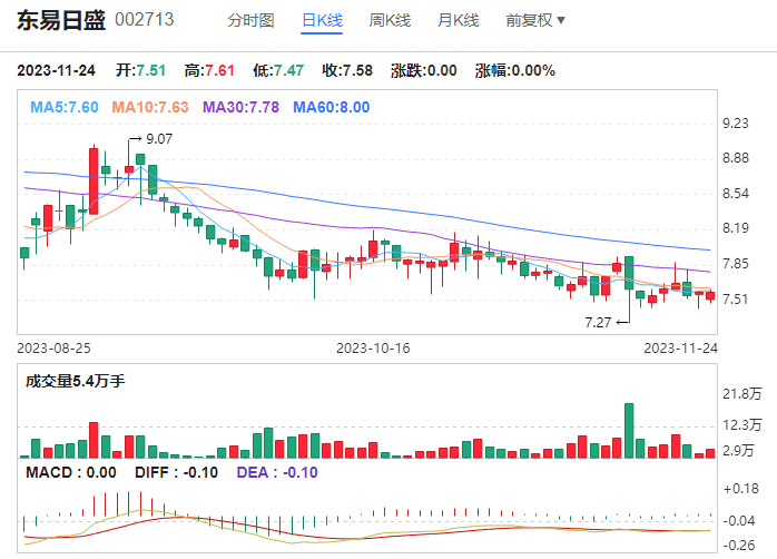 东易日盛的BOLL带相对较宽,股价波动较小。当前股价位于布林带中轨和下轨之间,表明股价下方空间较大。未来如果股价能够突破上轨的压力位或中轨的支撑位,则有望继续上涨。