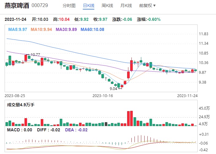 燕京啤酒的BOLL中轨对股价形成了一定的压力,但当前股价已经逐渐突破了中轨的压制。同时,布林带上轨成为了股价的重要支撑位,表明股价上方空间较大。整体来看,燕京啤酒的走势较为稳健,未来有望继续上涨。