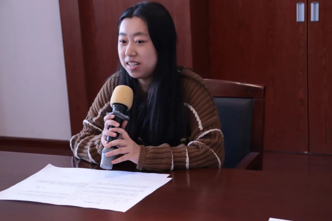 胡文依老师代表指导教师发言,感谢实习老师对我校的付出,对实习教师实习工作和专业能力表示肯定,并希望实习老师在日后工作中能够做一个有心人,多积累多反思,既要对本专业进行深度挖掘,也要对横向学科进行发展,成为复合型人才。