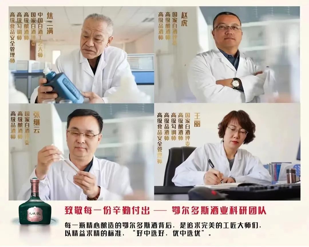 鄂尔多斯酒业目前拥有中国白酒工艺大师、国家级评委等各类专家技术人员20余人。多年来,鄂尔多斯酒业技术团队在白酒生产领域积极探索、投入大量精力进行技术研发和创新,不断提升产品酿造工艺,丰富产品类型,切实保障了每一瓶酒的高品质。未来,鄂尔多斯酒业将充分发挥品牌优势、技术优势,继续把“老字号”民族品牌做大做强。