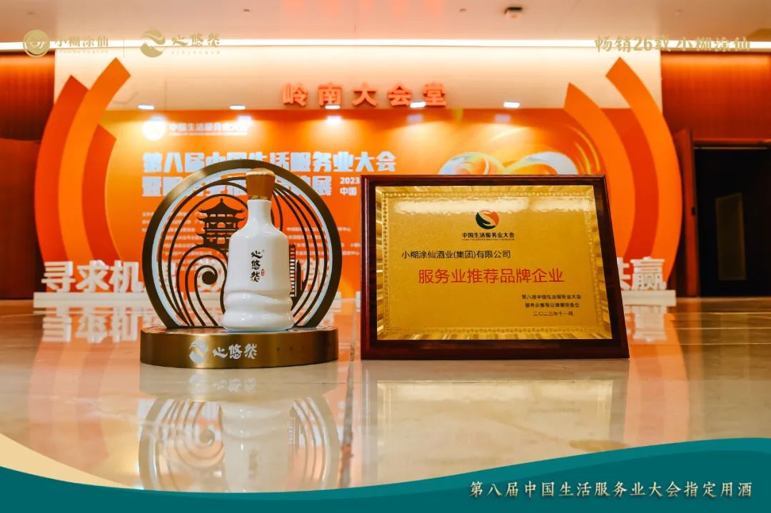 值得一提的是,大会期间,小糊涂仙酒业集团作为名优企业代表,获得“服务业推荐品牌企业”荣誉称号。无论是在同期举办的服务业推荐品牌展上,小糊涂仙酒业集团携旗下三大品牌、五大系列悉数亮相,零距离、多维度展示小糊涂仙酒高质量发展成果,还是在嘉宾如云的欢迎晚宴上,以心悠然·鉴心、心悠然·鉴赏两大高端酱香杰作礼敬精英,都让与会人士在探讨中国生活服务业发展热点问题的同时,对小糊涂仙酒的匠心品质和文化底蕴有了更深刻的感受。