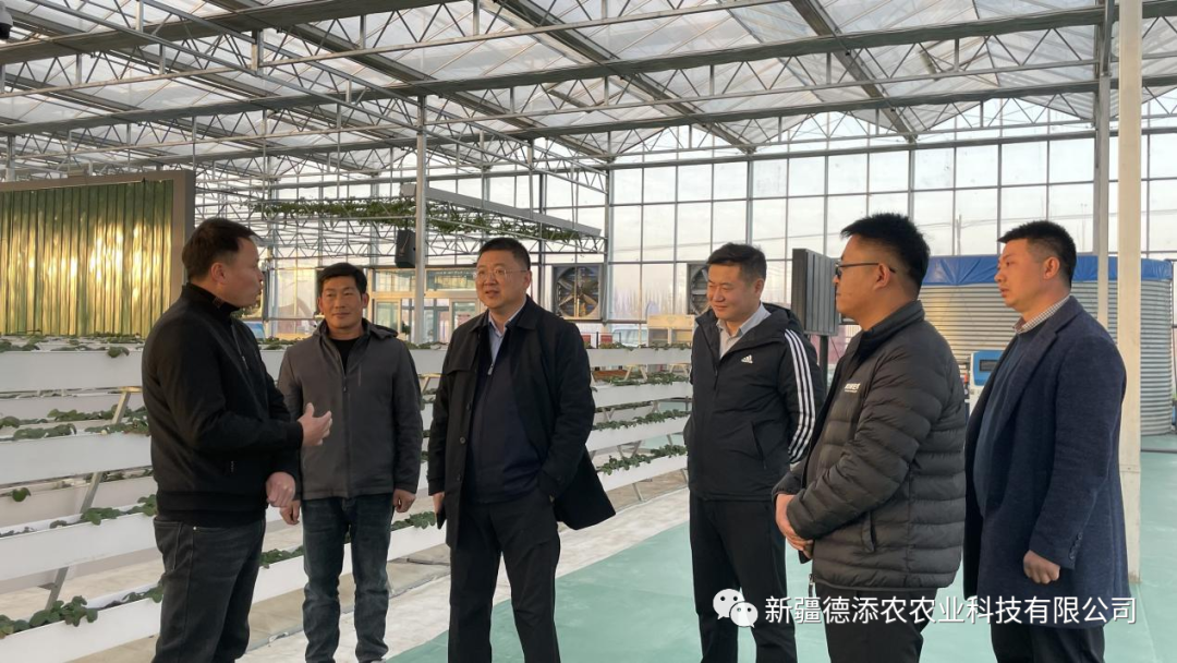 2023年11月22日下午,轮台县县委书记肖旭、副县长杨森到新疆德添农农业科技有限公司轮台县现代设施农业产业园项目调研。新疆德添农农业科技有限公司一期项目负责人刘明君、种植负责人冯奎国、综合部经理周金海、运营经理曲成伟等陪同调研。