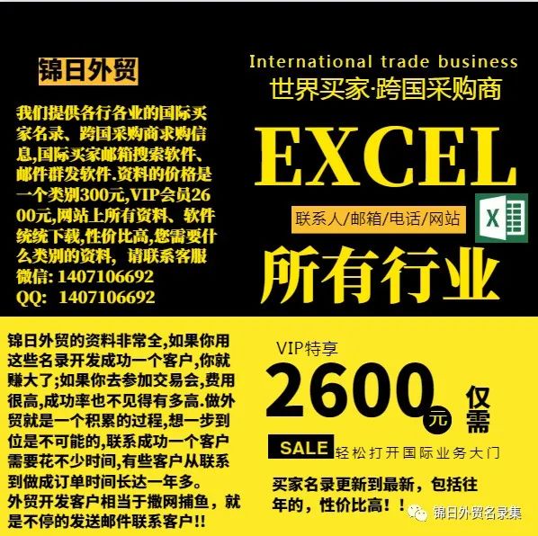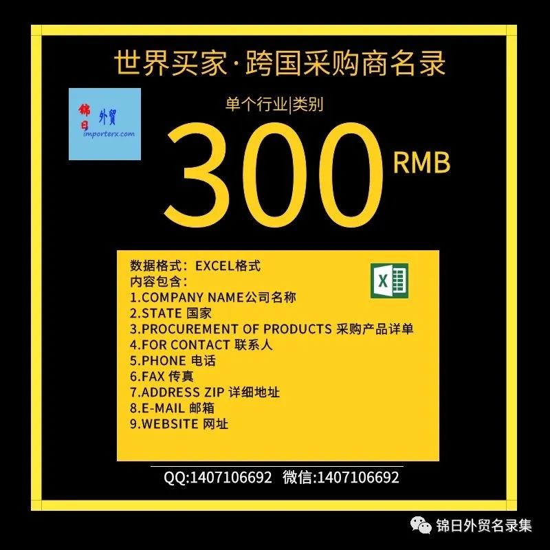 微信公号: 锦日外贸名录集 (关注后,天天免费推最新买家资料)
