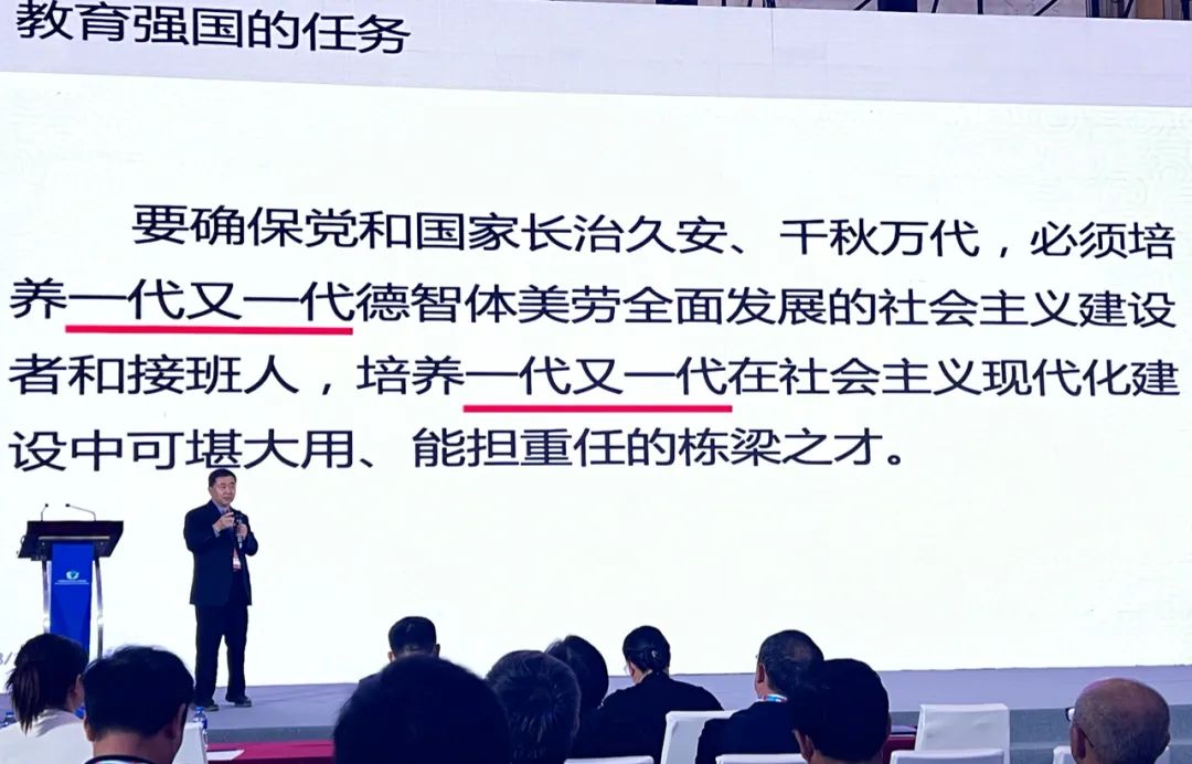 本场论坛分两部分,第一部分是教育部小学校长培训中心常务副主任、北京师范大学校长培训学院党支部书记、校长陈锁明,带来主题为《站在新时代背景下看教育高质量发展》的报告。陈院长从解读习总书记关于教育的三次讲话开始今天的讲座,阐述基础教育的重要性,引导大家深入理解、领会习总书记的讲话精神。同时,带领场下教育者一同思考如何建设高质量教育,从不同主体视角对高质量教育进行讲解,再结合教研方针、新课标、核心素养,让教育者们明晰了教育高质量发展的标准。陈院长指出教育高质量发展要站在党和国家层面、社会层面、家庭层面、教育者层面、个体层面多方面理解,教育高质量发展要顺应时代的要求、价值的追求、理念的诉求、过程的探求、结果的供求。高质量的基础教育阶段应该结合新课标要求先育人再育才,培养全面发展的人,让学生获得成就感和幸福感。要充分认识时代背景,充分认识教育的成就与问题,明确教育的边界,要树立正确的世界观和方法论。为台下的观众提供教育高质量发展的提升路径和深度思考。