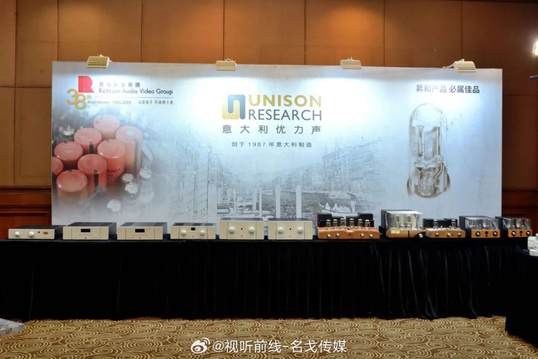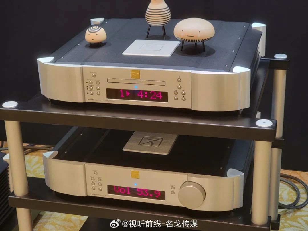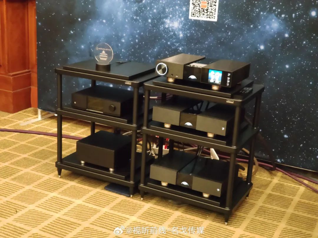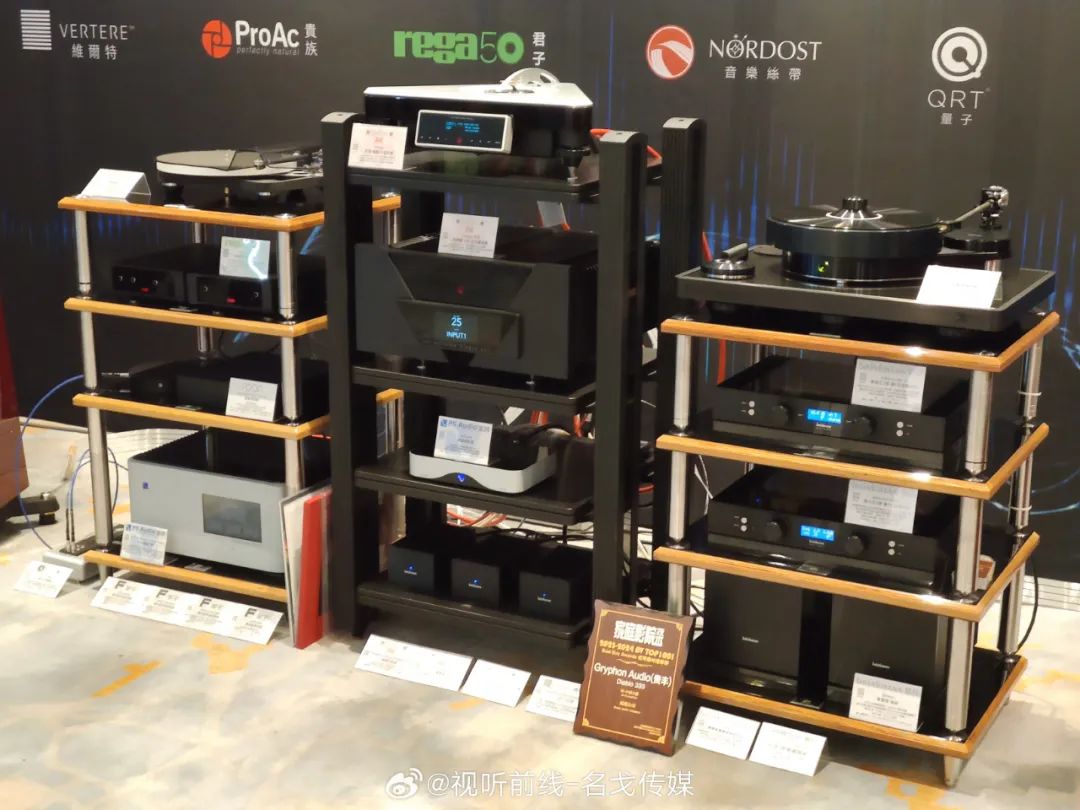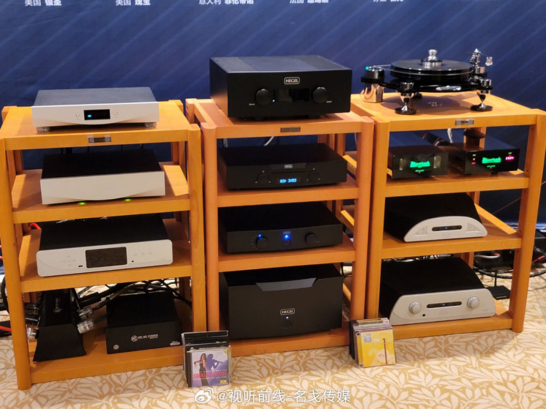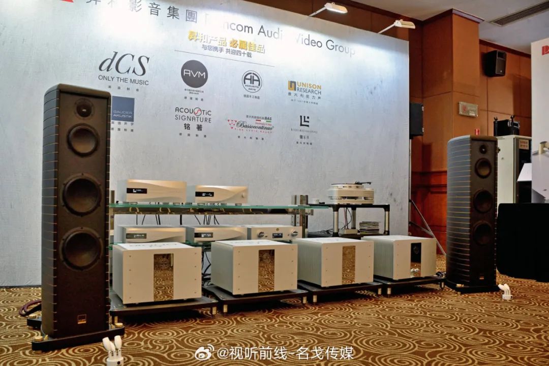 昇和影音在这次展会上展出全线代理的欧陆顶级音响品牌,包括英国dCS、德国Acoustic Signature铭著、德国Accustic Arts、Gauder Akustik高德声学、意大利UNISON RESEARCH优力声、意大利LA Sound银乐声、意大利BAS全系列等等品牌的产品。现场演示器材有德国Acoustic Signature铭著ASCONA NEO真理黑胶唱盘,英国dCS VIVALDI维瓦尔第 SACD/CD转盘、升频器、数模转换器、外置主时钟四件套,德国Accustic Arts Preamp V /Mono IV前后级、Gauder Akustik高德声学DARC达克200音箱,采用线材和音响架分别是意大利LA Sound银乐声线材和意大利BAS全系列音响架。