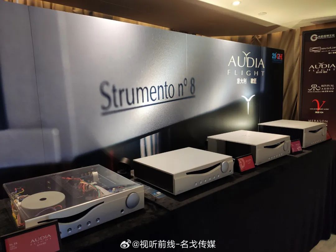 先声音响展出旗下代理品牌的产品,包括美国Cardas卡达声、意大利Franco Serblin梵歌、美国Jeff Rowland乐林、美国NBS蛇皇、日本Oyaide电之皇者、荷兰PrimaLuna翩乐、新加坡PlixiR净源、意大利solidsteel架皇、韩国SOtM音乐之窗、意大利Yter易达线、加拿大1877 Phono Zavfino“1877 模拟世家”等等。重点演示器材有:Franco Serblin 梵歌 Ktema 永恒之声落地式音箱、Franco Serblin 梵歌 Accordo Goldberg 阿卡度歌德堡 (全国首发)书架式音箱、PrimaLuna 翩乐 EVO 300 Hybrid Power胆石功率放大器、PrimaLuna 翩乐 EVO 100 Phono真空管MM/MC唱头放大器、PlixiR 净源 Elite BAC 3000 精品平衡式交流电处、Solidsteel 架皇 HP-系列 音响架 (全国首发)、1877 Phono Zavfino 1877模拟世家 Copperhead-X 黑胶唱机、1877 Phono Zavfino 1877模拟世家 ZV8-X 黑胶唱机等等。