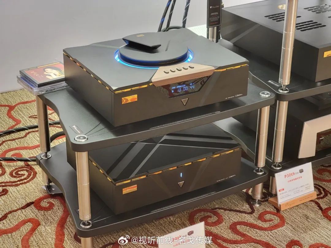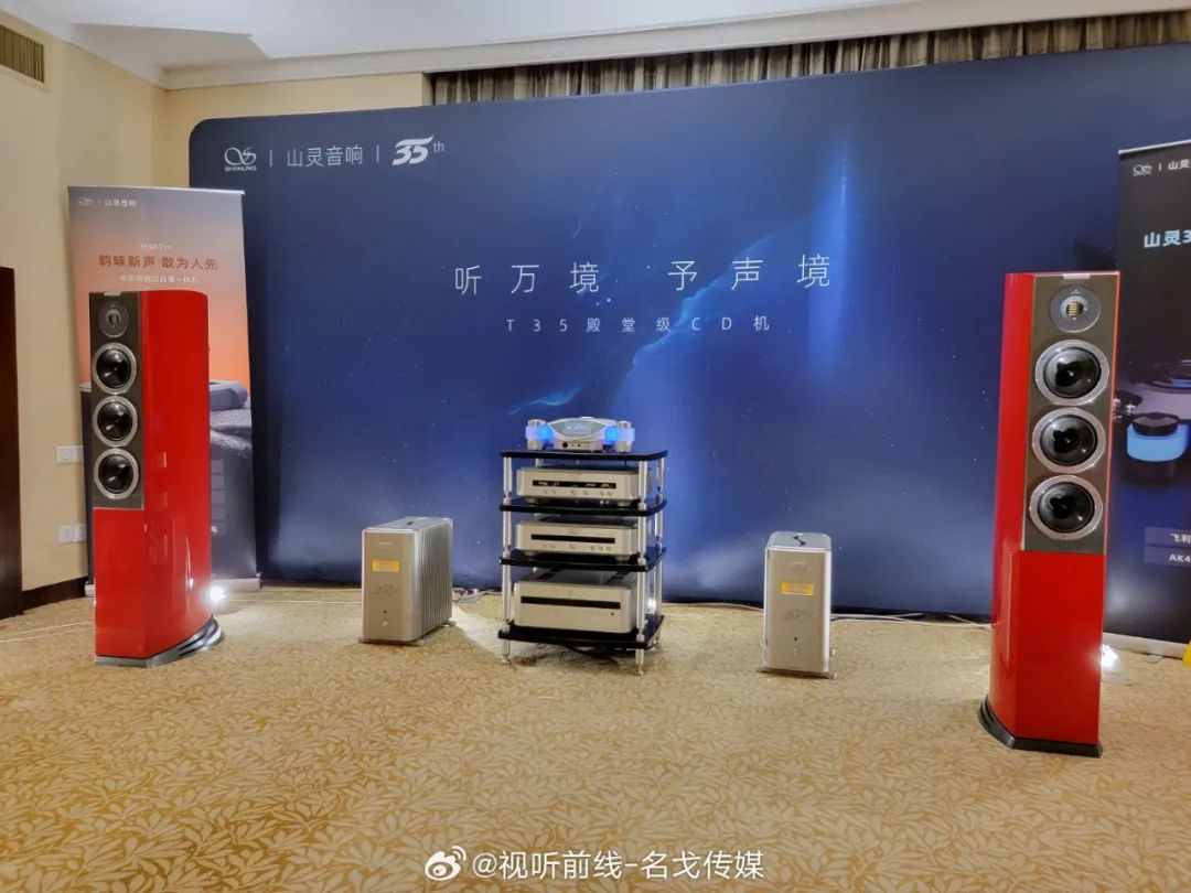 山灵音响带来35周年殿堂之作CD-T35电子管CD播放机首秀。现场搭配25周年纪念型号P600前级放大器和A600单声道后级放大器演示。