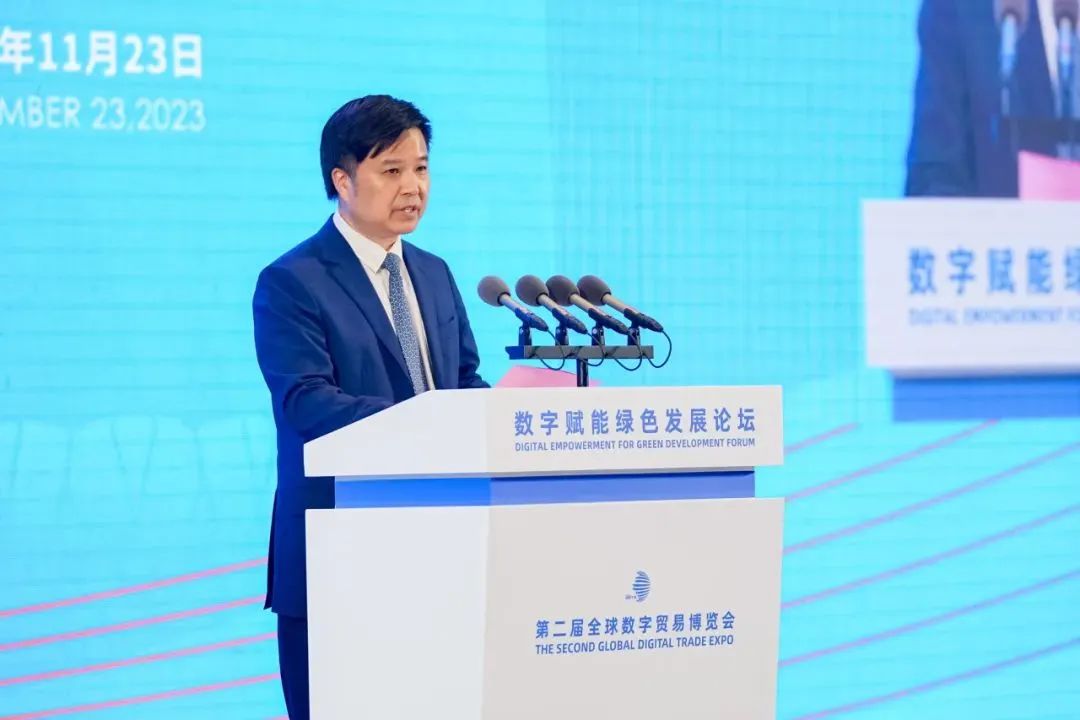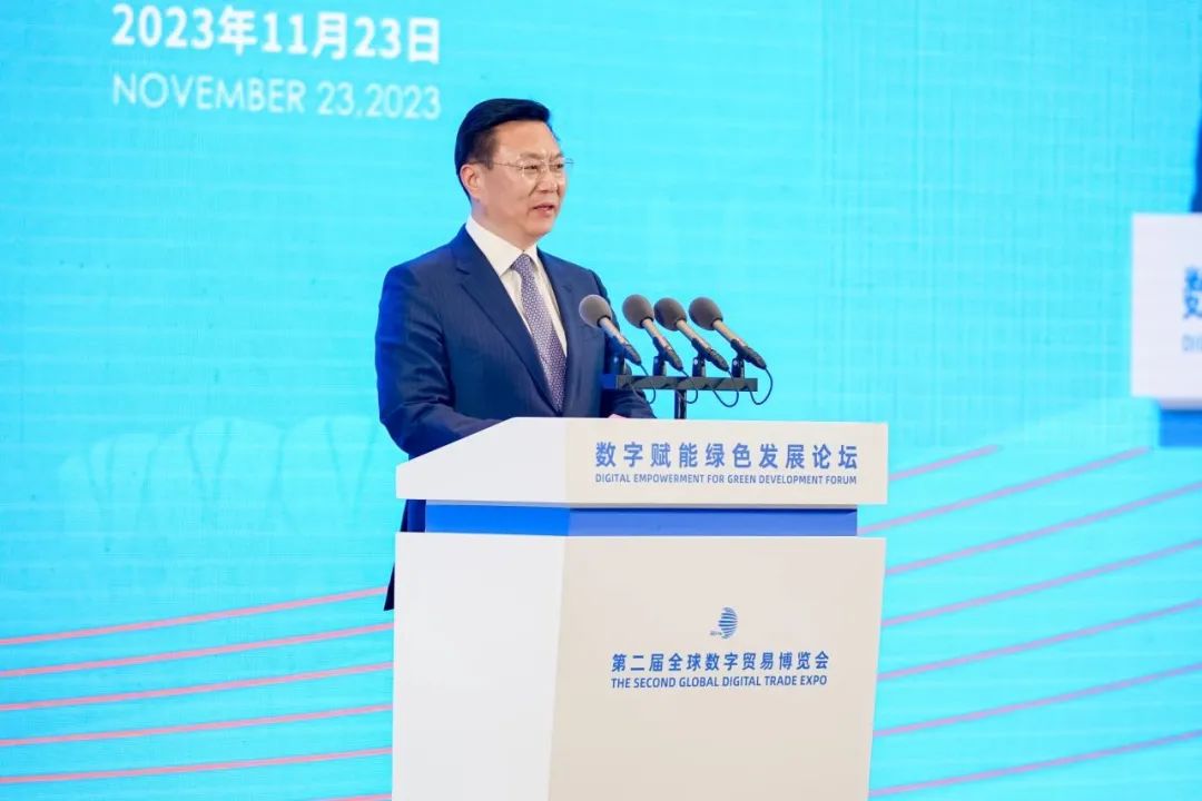 11月23日,由全球数字贸易博览会组委会主办,浙江省商务厅、浙江省生态环境厅、中国机电产品进出口商会、杭州市人民政府承办的数字赋能绿色发展论坛在杭州国际博览中心举办。