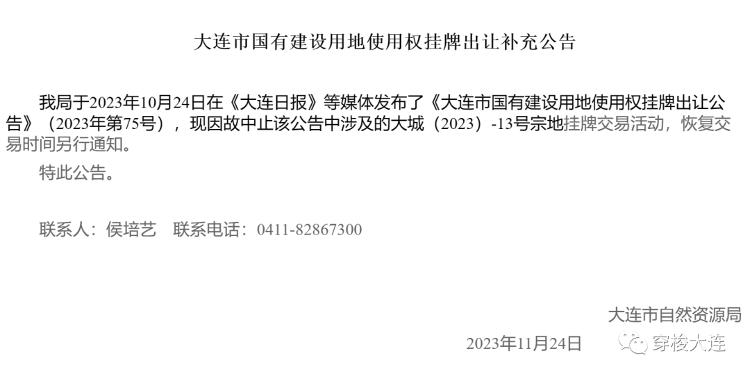 大城(2023)-13号地块中止交易通告