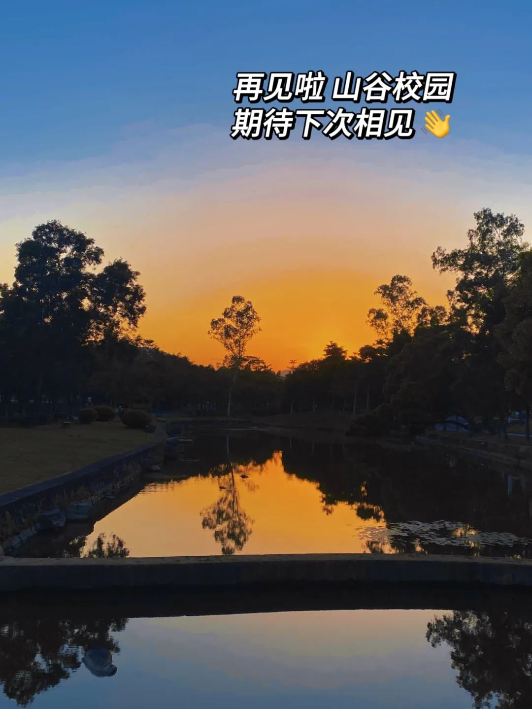 夜晚走在学校的湖边