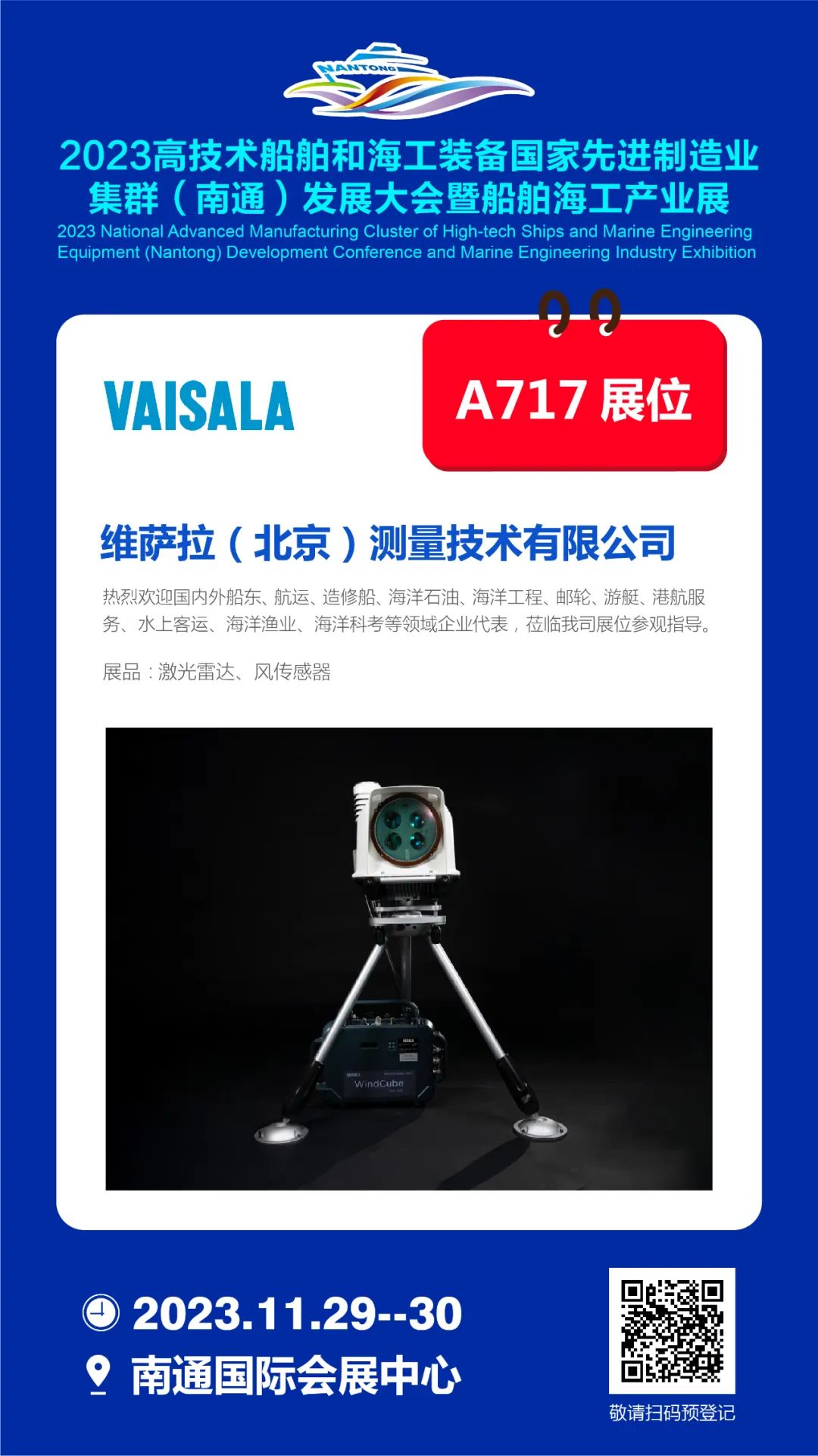 更多精彩,就在2023南通船舶海工产业展。11月29-30日,南通国际会展中心A717展位,相约维萨拉!