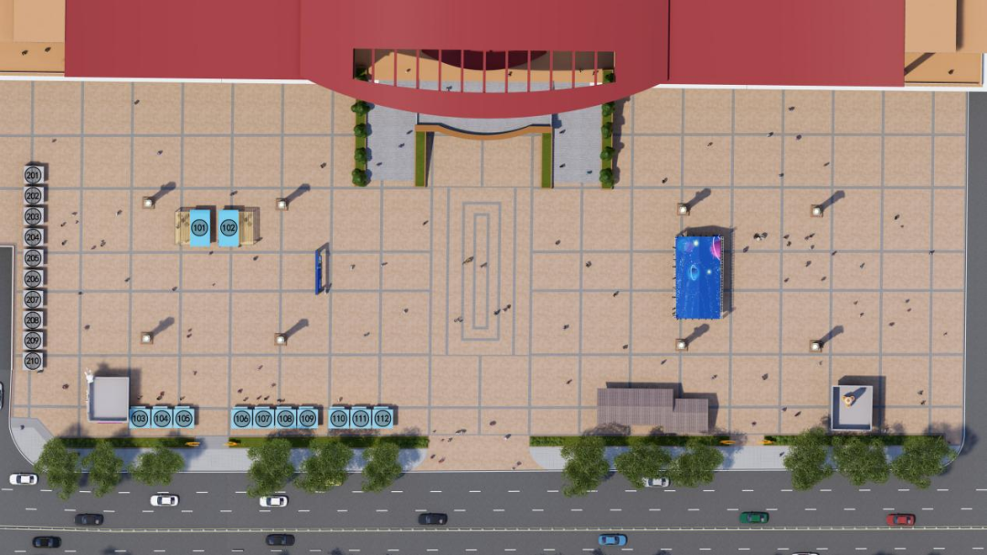位于三明市会展中心广场,地处市区中心地带交通便利,靠近麒麟山公园,同时周边有大地影院、好多多购物广场、群乐超市等,商业氛围浓厚,居民小区密布。项目设置常驻大型演出舞台1个、搭建集装箱商铺22个,设计相关氛围灯光、打卡点彩喷以及水电等土建改造项目。