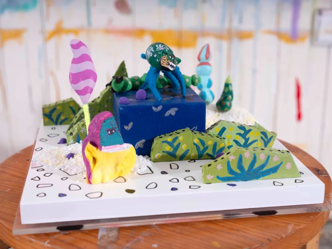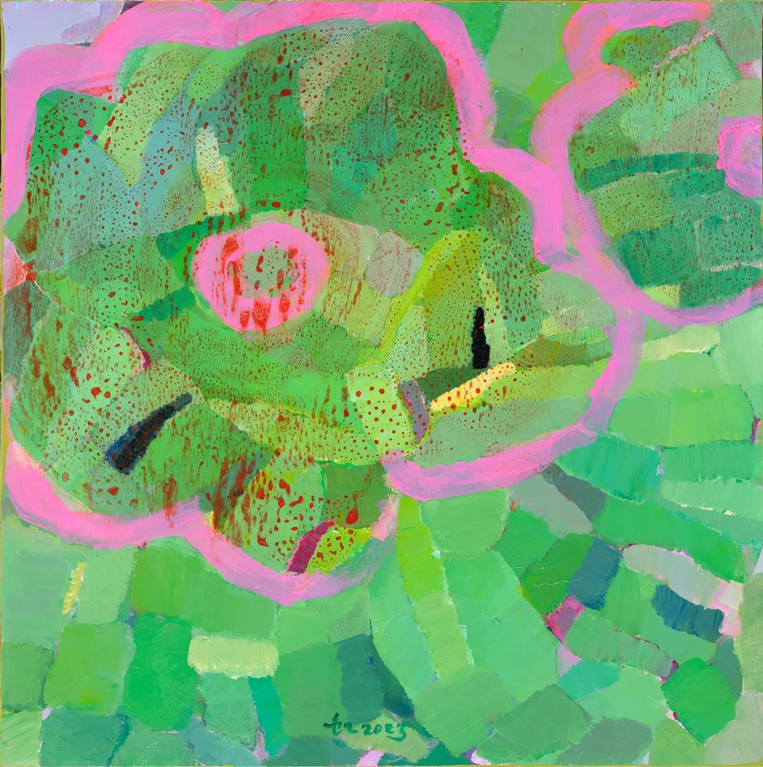 艺术家以多种人与自然互相观照的形象来回应《山海经》,讲述古人的神话、生活、自然,及其相互的交错与纠缠;唤醒人们记忆中的梦境,引发个体样本对于与远古神话潜在的关联,从现实到虚构,从诞生到归去,由创世至当下。《山海经》自古流传至今,仅存文字而并未留下确切的图像,有着“似之而非”的混沌感。通过对“神话”的想象进行引申,艺术家创作以外的隐匿的精神世界可被感知并被演绎,以此建构一个属于个人、属于这个时代的感性空间,即画中万物相依、天地与我并生、万物与我为一。