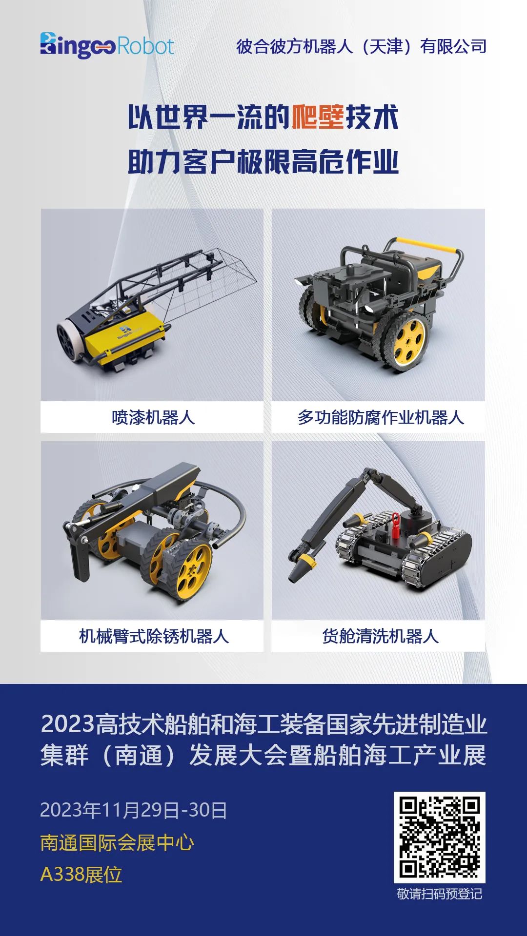 作为船舶行业多元场景爬壁机器人作业的实现者,此次展会上,彼合彼方将携四款爬壁机器人产品于A338展位与业界同仁相见,全方位展示在船舶海工行业的技术积累与创新成果,欢迎莅临展位参观洽谈!