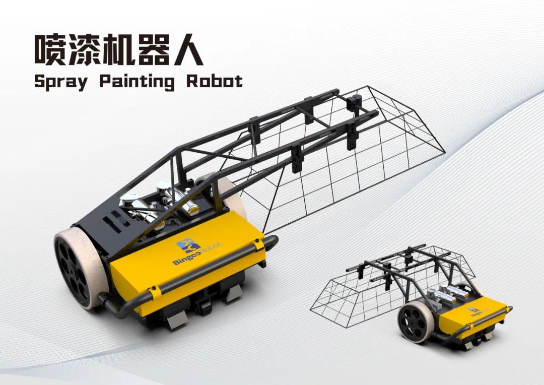 适用于船舶和大型储罐表面的无气喷涂作业。机器人可同时搭载1-2把自动喷枪沿水平/竖直方向进行作业,通过机器人内置的一键换道程序,可以设定机器人的换道距离,保证每道油漆间的搭接宽度,可大幅降低操作难度,提高喷漆作业效率。