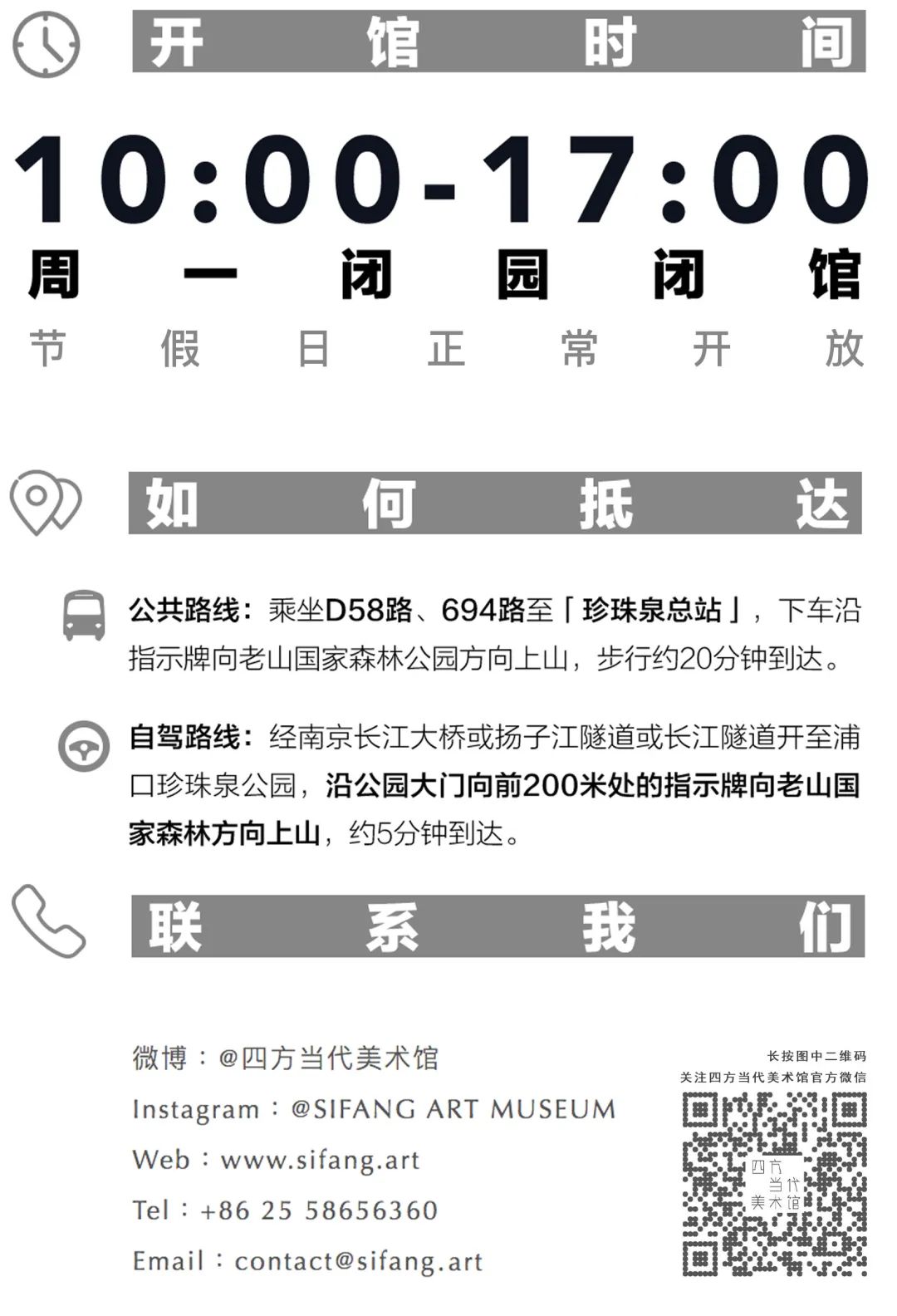 请大家注意以上调整,合理安排参观行程。其它活动信息敬请关注四方当代美术馆微信、微博等官方平台的推送。如给您带来任何不便,敬请谅解!