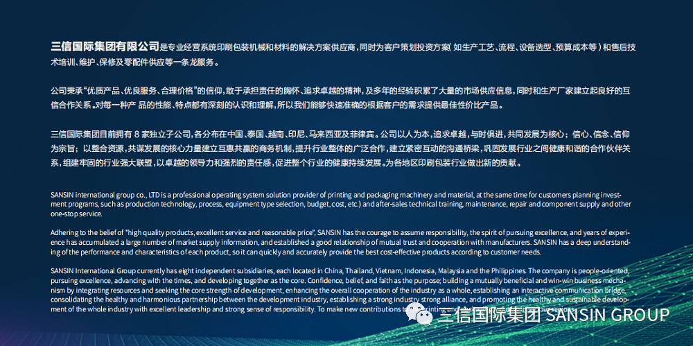 2023东南亚包装工业博览会的圆满成功标志着东南亚的包装工业在持续的高速发展,为行业未来的进步奠定了坚实基础。作为参展商之一,三信国际集团在展会期间充分展示了产品优势,赢得了众多观众和合作伙伴的关注与认可。
