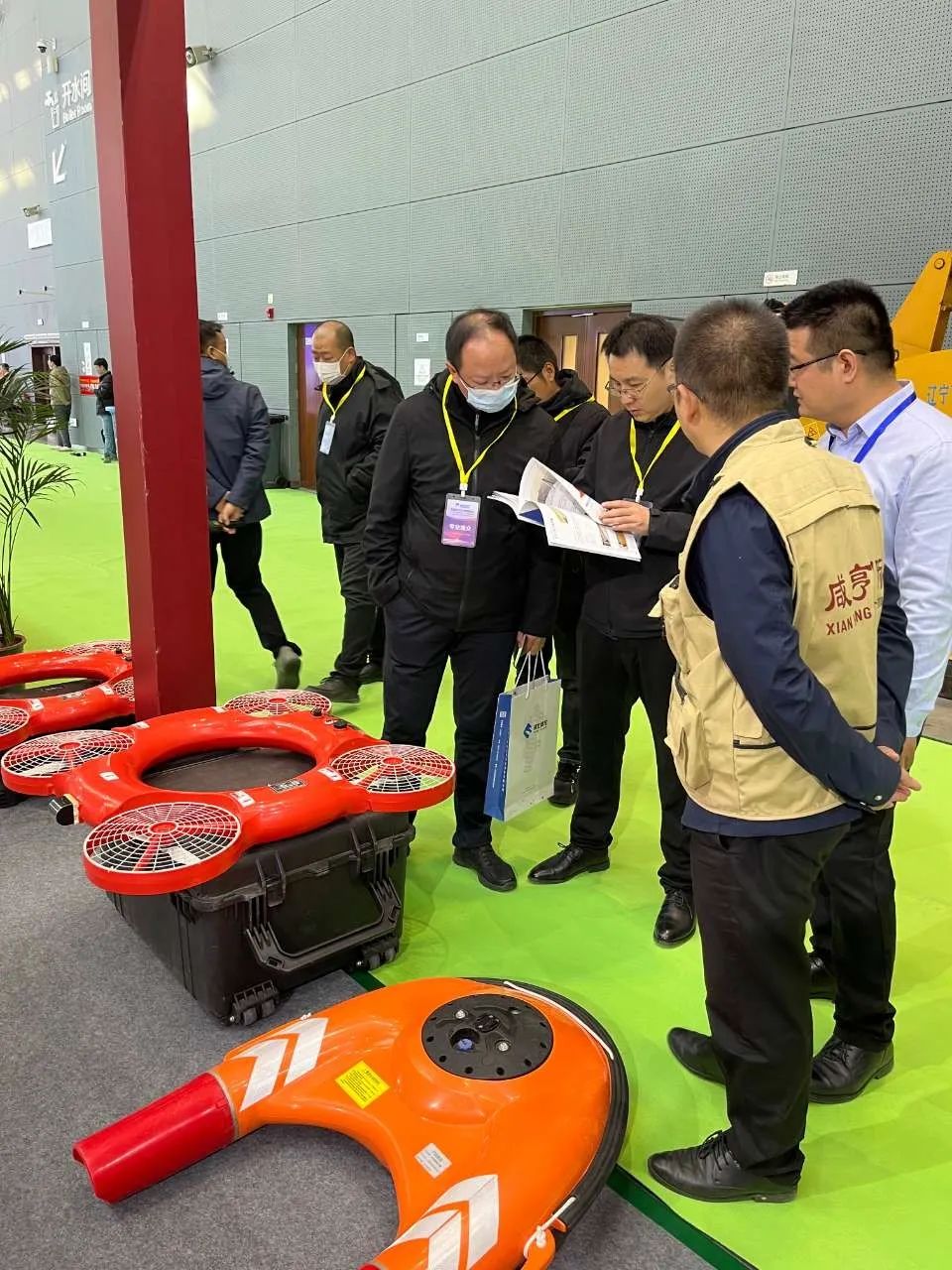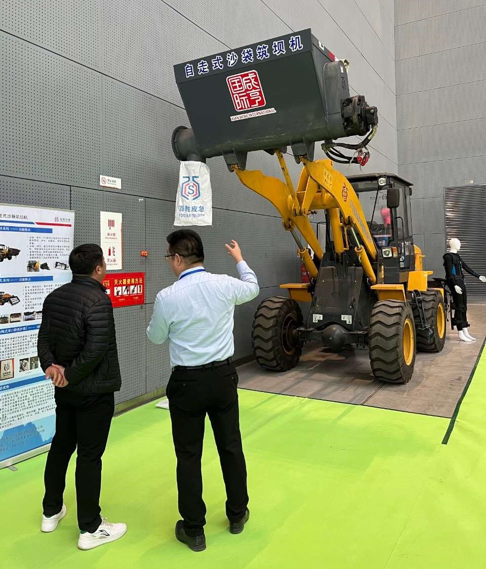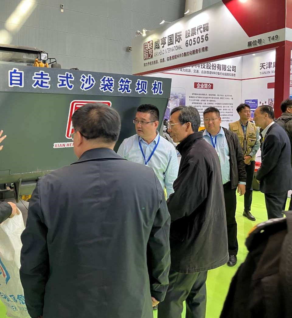 在本次展会现场,咸亨智能携一系列优秀产品亮相,包括自走式沙袋筑坝机、水域救援无人机、无人机及自巡检机巢、水域救援机器人、外骨骼助力机器人、堤坝管涌检测仪、防汛救援服装等防汛应急救援装备。其中,自走式沙袋筑坝机和水上救援无人机吸引众多嘉宾的驻足观看,现场反应热烈。