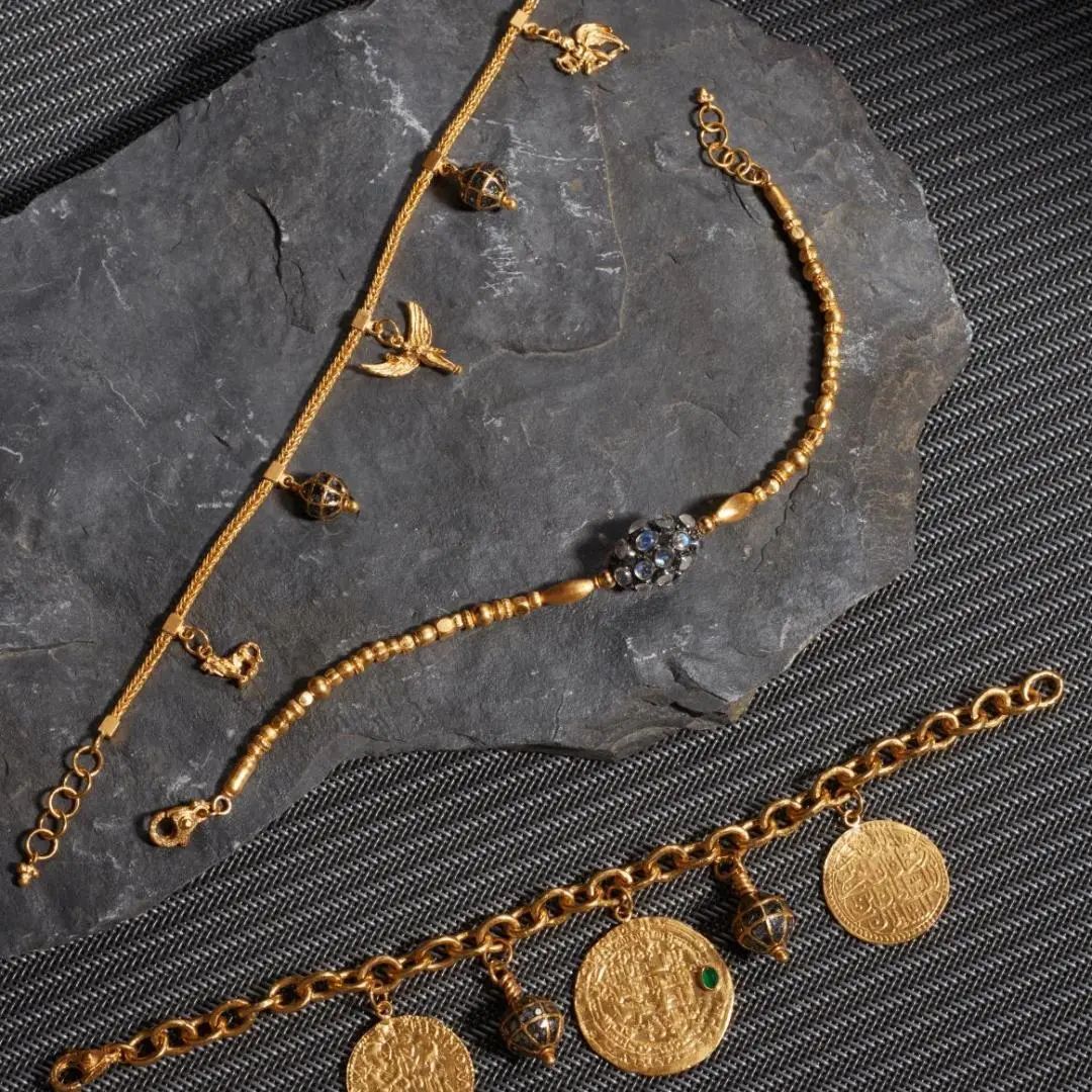 古法黄金,丝滑厚重的质感加上特殊的光泽,将矜贵雅致的国风范一下拉满,各类宝石的点缀复古华丽,从此丢掉对传统金器老气的刻板印象!