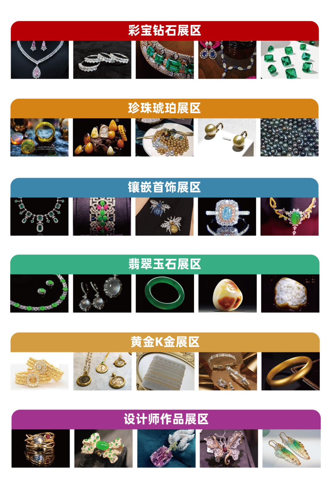 浙江省珍珠行业协会、中国台湾晶彩展团、珠宝厂商臻品展团、广东省彩宝首饰商会等实力展团联袂呈现。