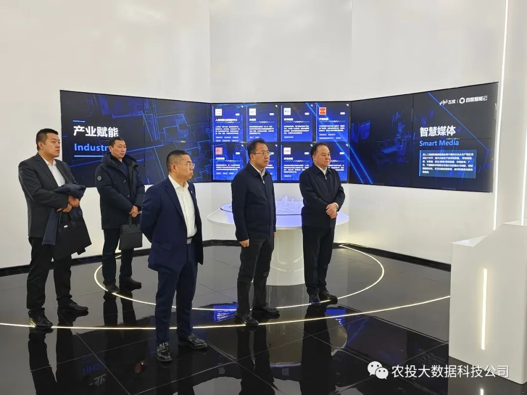 座谈前,安虎贲一行参观了农投大数据公司的农业大数据智慧农业展厅,听取了农投大数据公司相关人员对公司历史沿革、人才队伍建设、科技成果及奖项荣誉的介绍。