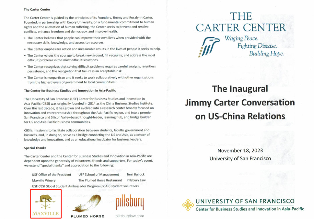 享誉世界的卡特中心是由美国前总统吉米·卡特和前第一夫人罗莎琳·卡特于1982年建立的非营利性组织。卡特中心一直致力于为中美关系的健康稳定发展做出积极贡献,是中美友谊的见证者和参与者。2002年,卡特中心的卓越成就使卡特总统获得了诺贝尔和平奖。