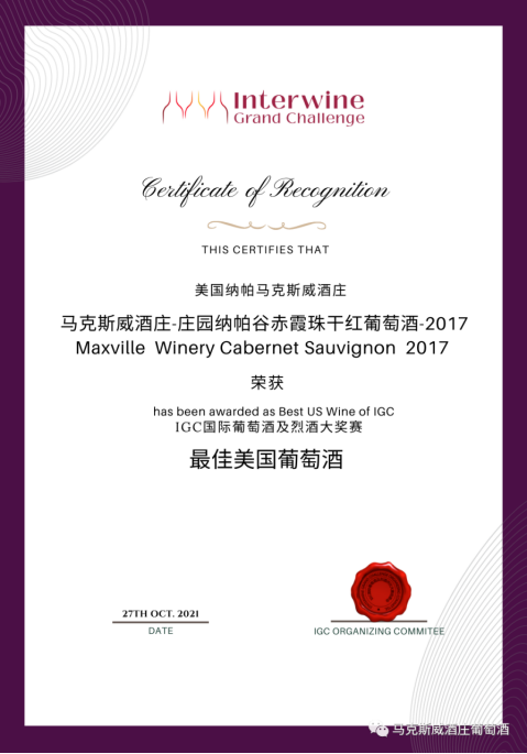 天佑德旗下马克斯威葡萄酒也屡获殊荣,受到了北美当地消费者、专业评酒师的一致好评。马克斯威葡萄酒获得的奖项包括:TEXSOM国际权威葡萄酒大赛金牌;美国《葡萄酒爱好者》杂志评分 93分;RVF中国·优秀葡萄酒年度评选银奖;Interwine葡萄酒与烈酒大赛双金奖。IGC国际葡萄酒及烈酒大赛“最佳美国葡萄酒”;葡萄酒行业最具“含金量”的G100国际葡萄酒及烈酒评选赛“金奖”。此外,目前马克斯威酒庄也已获得“商业厨房”的资质,是美国圣海伦娜市东部唯一获得商业厨房许可的酒庄,酒旅融合再进一步,兼具餐饮、品酒、旅游为一体的服务体验。