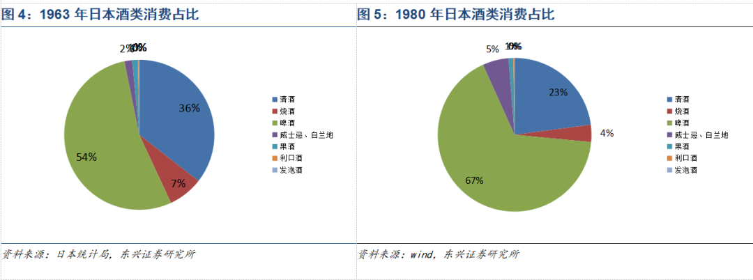 我们认为人口和收入的变化是日本酒类发展历程中最核心的推动力,而文化变迁和消费者口味的变化决定了日本酒类发展的方向,有这样几个结论: