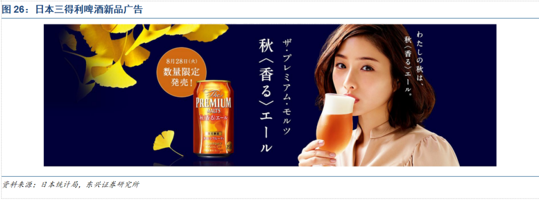 啤酒被低价的发泡酒和第三类啤酒所取代,我们认为一方面是因为税收的影响,低税率的发泡酒更具价格优势;一方面也是因为当日本人口红利消失之后,居民收入停滞,导致消费者对价格更为敏感;二是随着年轻人口味的变化,淡啤酒更受年轻人的欢迎,发泡酒和第三类啤酒味道更淡,更为年轻人接受。