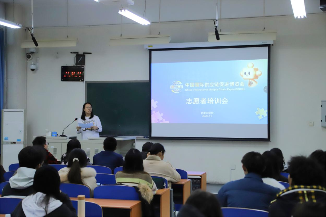 中国国际供应链促进博览会(下面简称“链博会”)将于2023年11月28日至12月2日在北京中国国际展览中心(顺义馆)举办。链博会将以“链接世界,共创未来”为主题,“共建、共促、共享”为原则,设置智能汽车链、绿色农业链、清洁能源链、数字科技链、健康生活链等5大链条和供应链服务展区。按照链博会志愿服务工作安排部署,为充分激发志愿者参与链博会志愿服务的热情,确保所有上岗志愿者具备满足岗位需求的政治素质、专业知识和服务能力,圆满完成链博会志愿服务工作的任务目标,北京农学院于2023年11月20-22日开展链博会志愿者通用培训。据悉,北京农学院共计招募38名志愿者,即将服务于招展、信息和运营三个工作岗位。