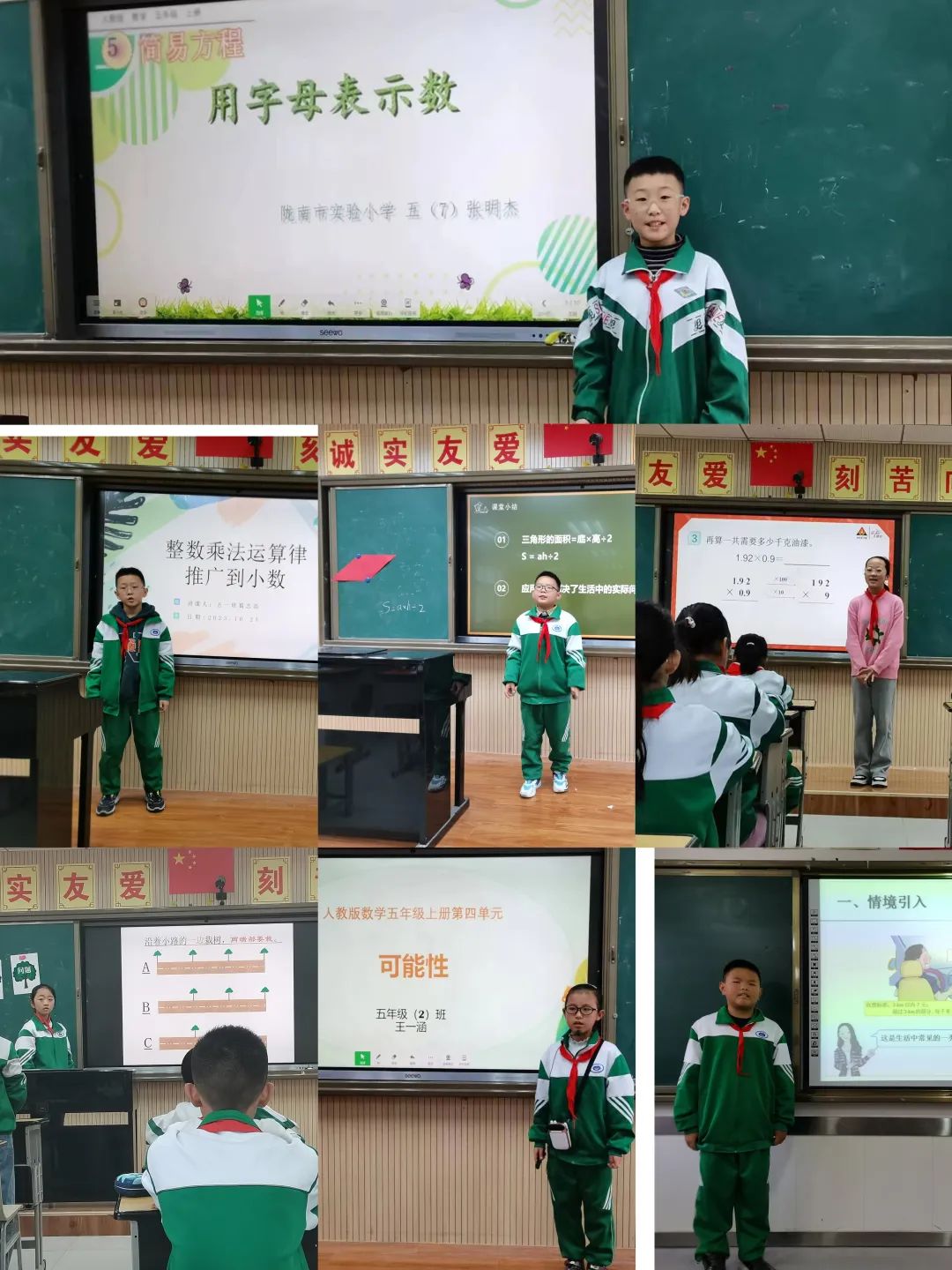“学数学不如做数学,做数学不如说数学”,数学表达能力在数学教学中非常重要。“小老师”上讲台活动的开展,锻炼了学生的逻辑思维能力和表达能力,让更多的孩子从中体验到了“学数学、讲数学”的乐趣。提高了学生用数学的语言表达现实世界的能力,激发了学生学习数学的兴趣。
