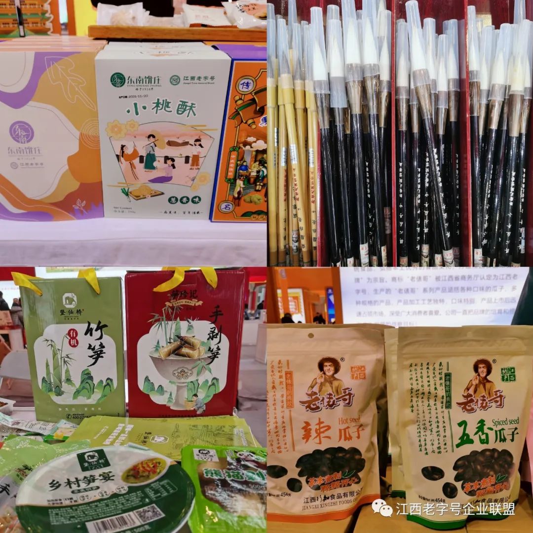 我省高度重视本届展会,优选了极具江西特色的13家老字号企业参会,有绳金塔三花酒、郑记麻姑酒、大塘清明酒、胜仙米面、森和兴贡面、恩泉茶油、永叔公腐乳、阳春园蜂蜜、华乐豆制品、登仙桥竹笋、东南饼庄糕点、老俵哥瓜子、邹紫光阁毛笔,涵盖地方名酒、粮油副食、文化用品等多个与老百姓日常生活密切相关的行业。