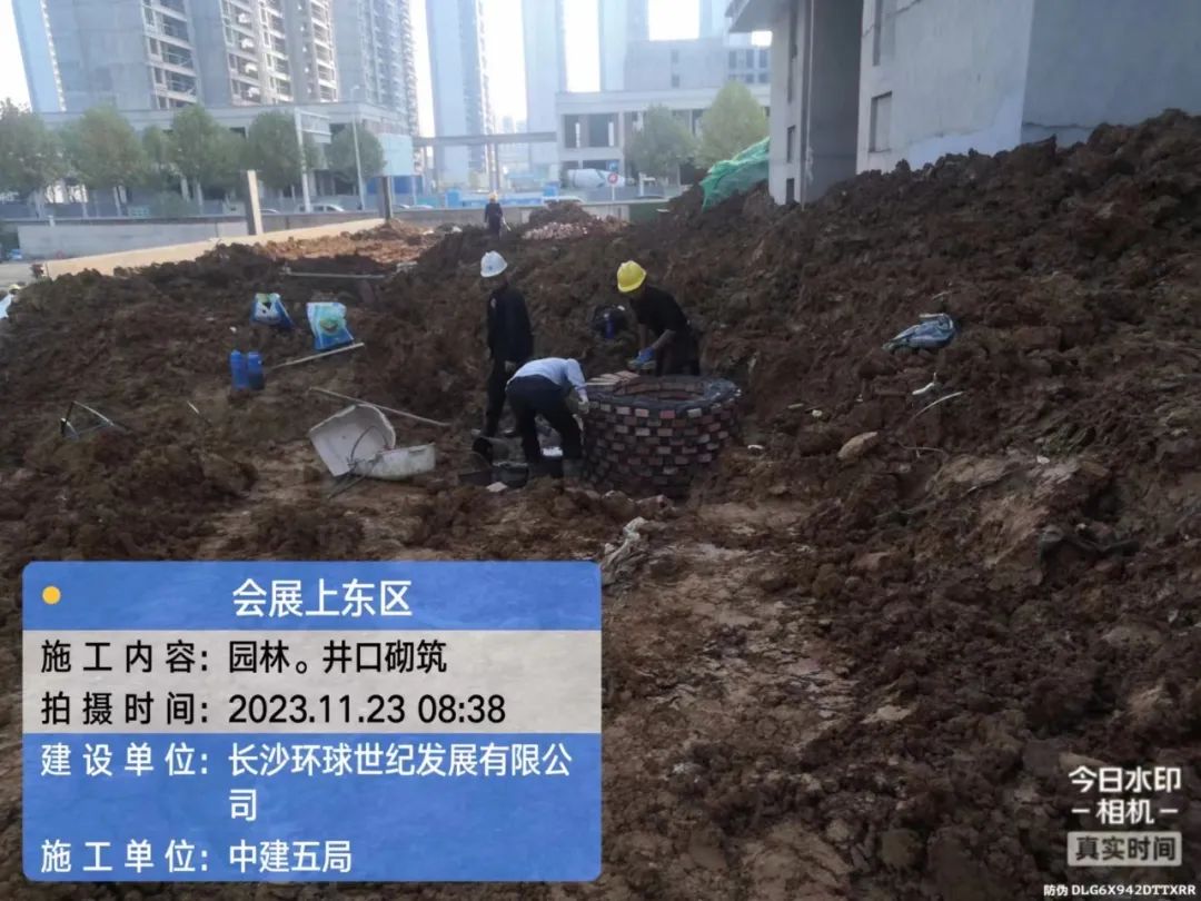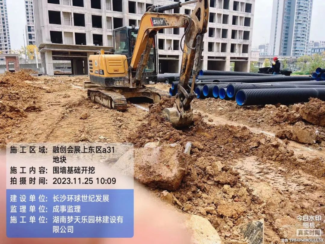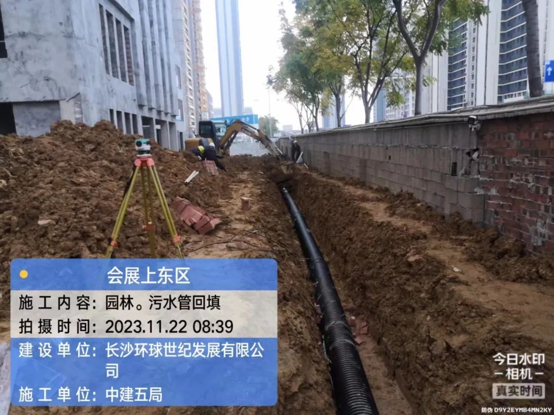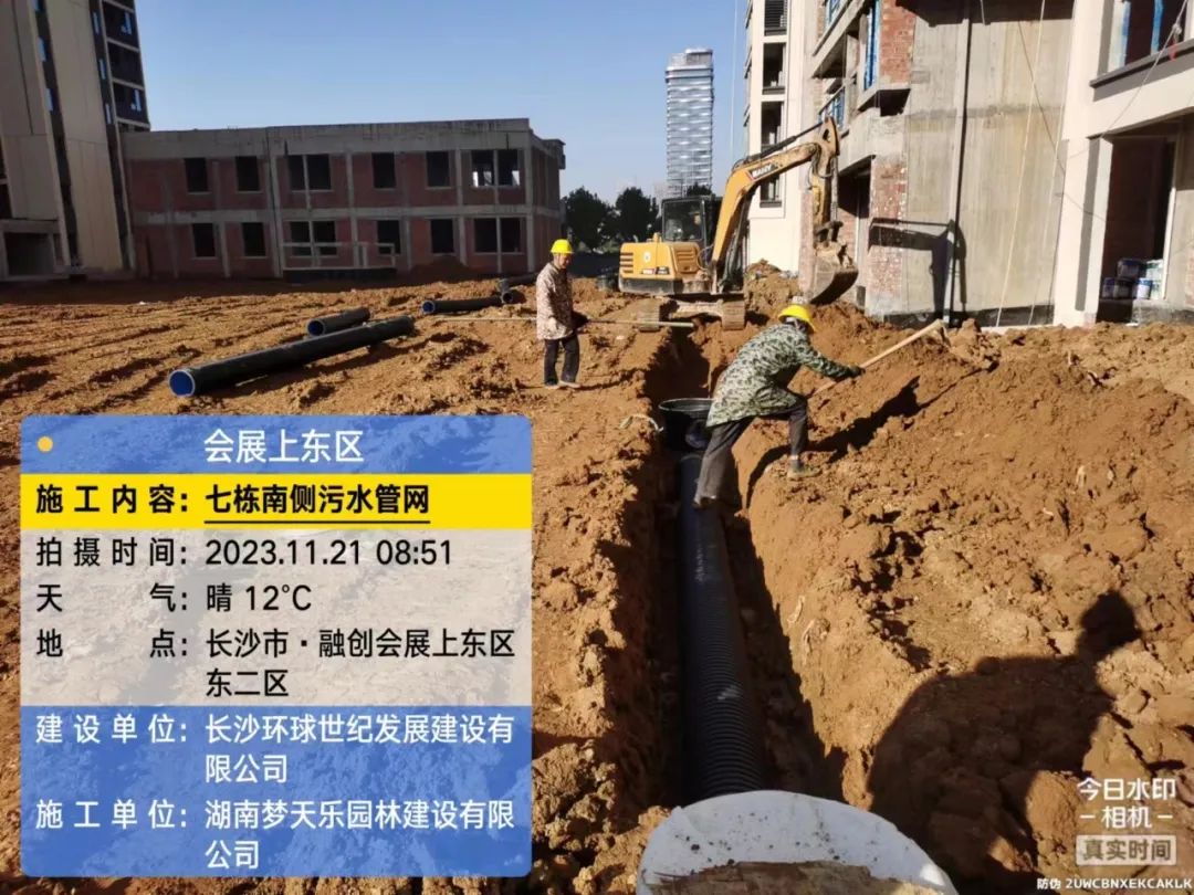 园林填土及管网施工。