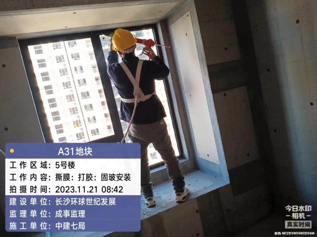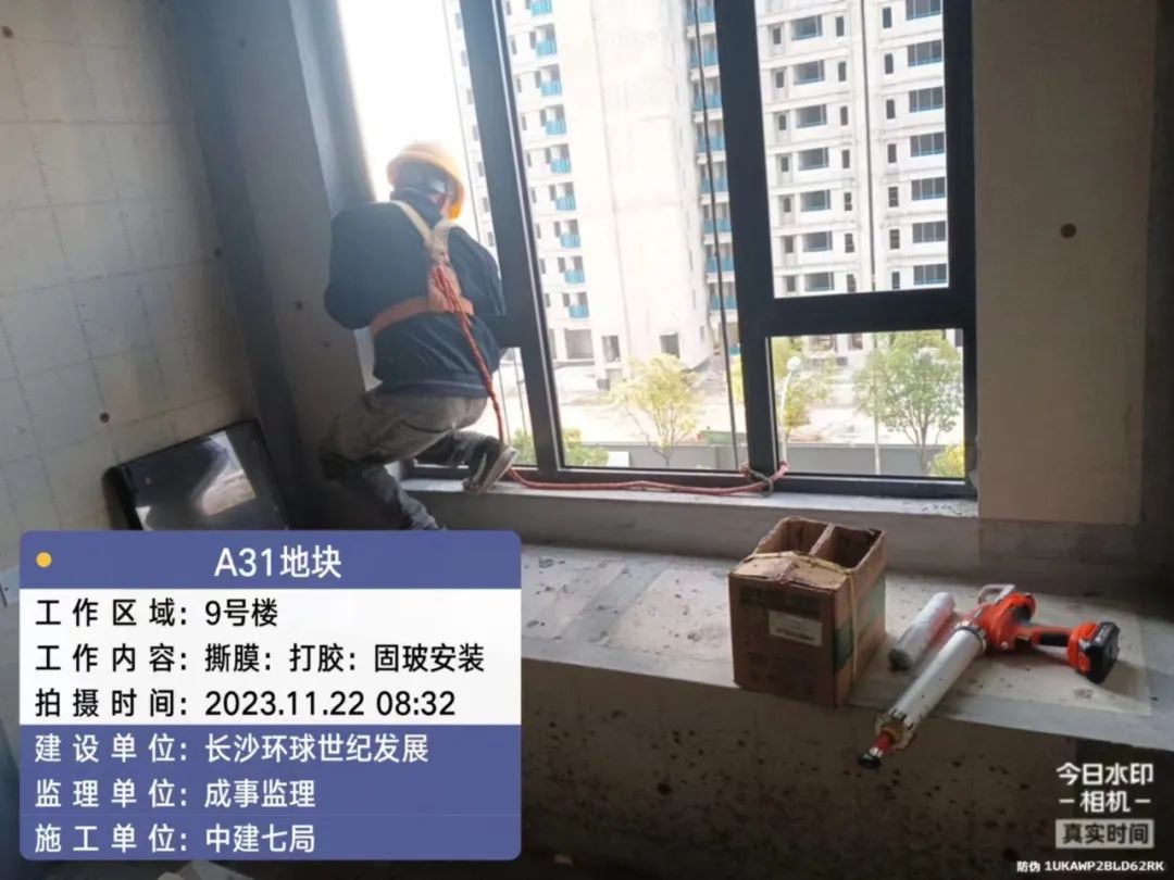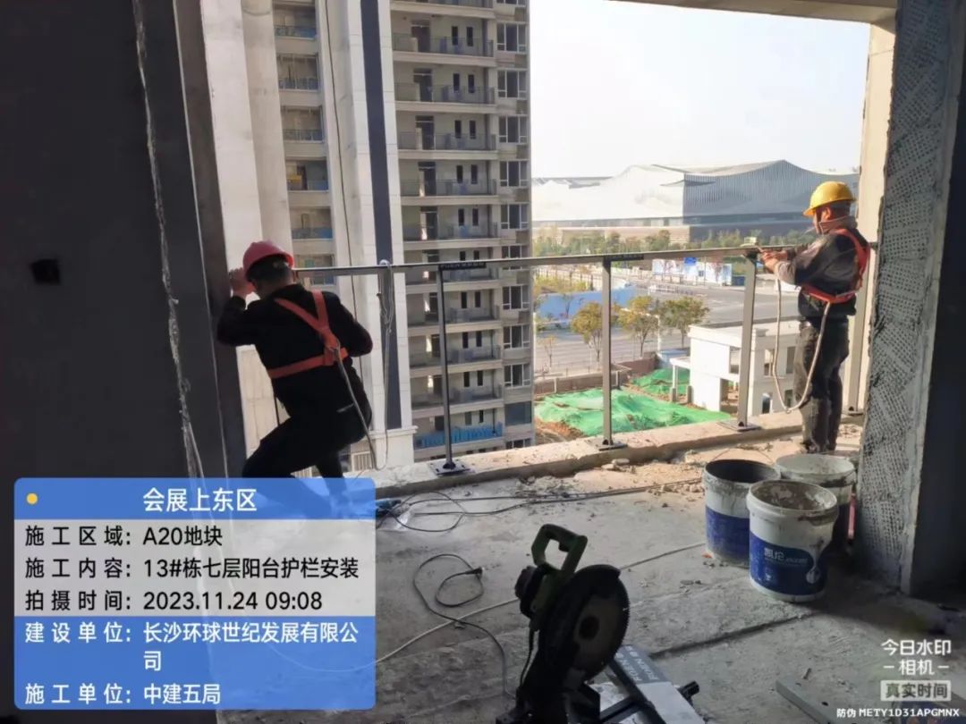 门窗、栏杆及防火门施工,固玻进场。