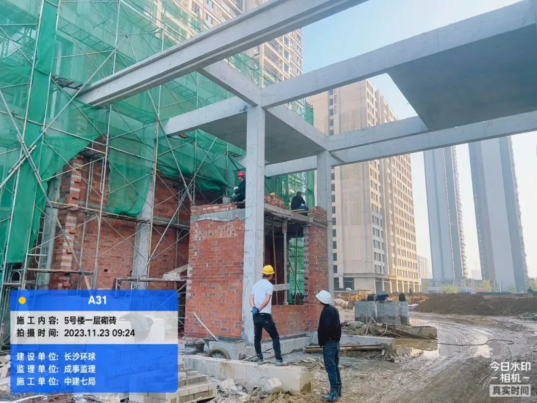 主体结构完成100%;二次结构完成76%;水电安装完成53%;锌钢栏杆安装45%;地下室工程完成48%;外墙完成16%,铝合金门窗安装完成23%(其中窗框完成80%)。