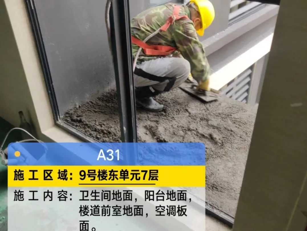 10#栋抗裂砂浆、楼梯间、卫生间找平,墙面保温施工;11#、12#栋地面保温施工。