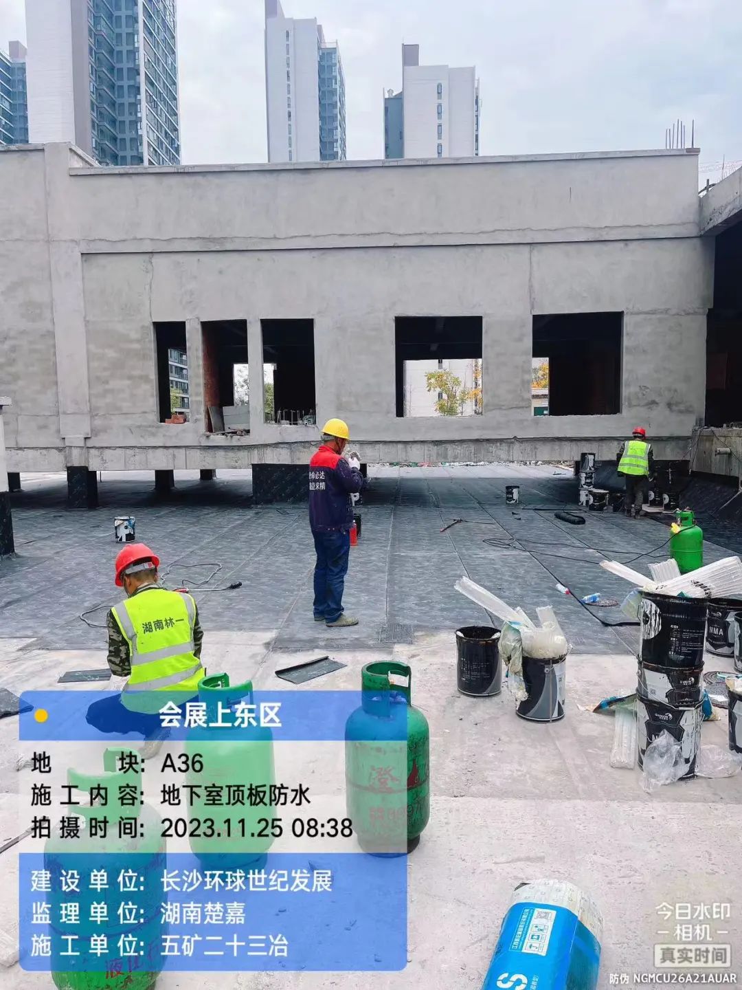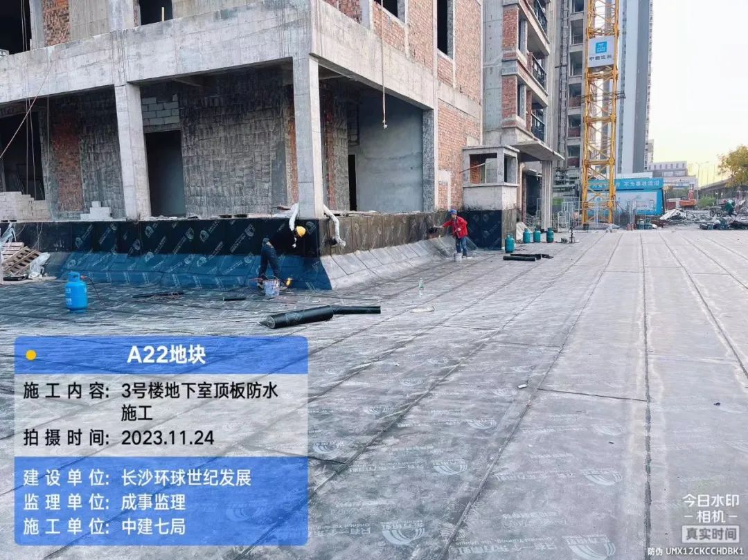 地下室抹灰、砌筑、消防施工;地下室顶板防水施工。