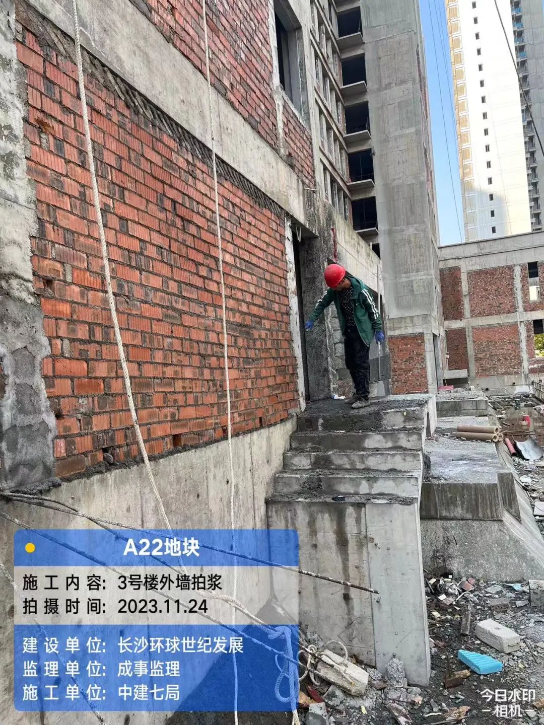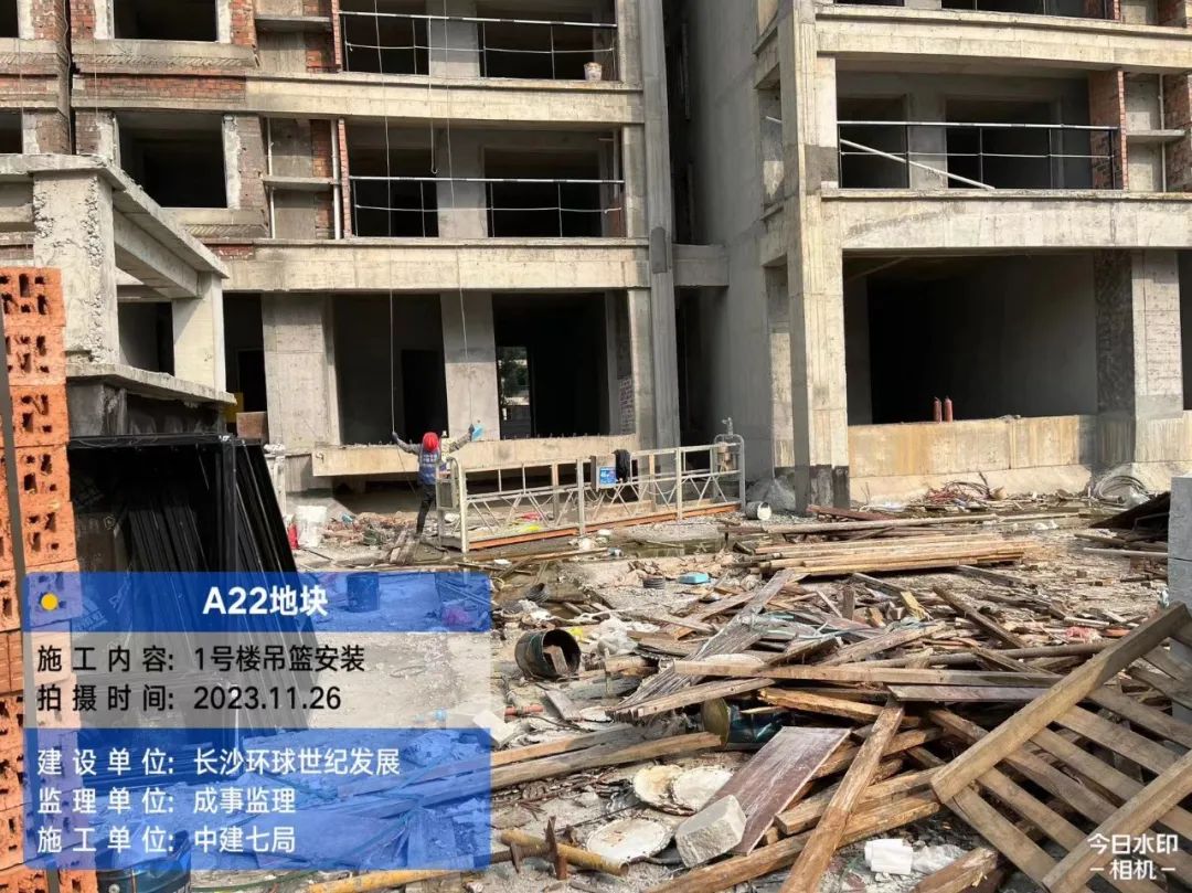 1栋吊篮安装,3栋吊篮安装及外墙拍浆。